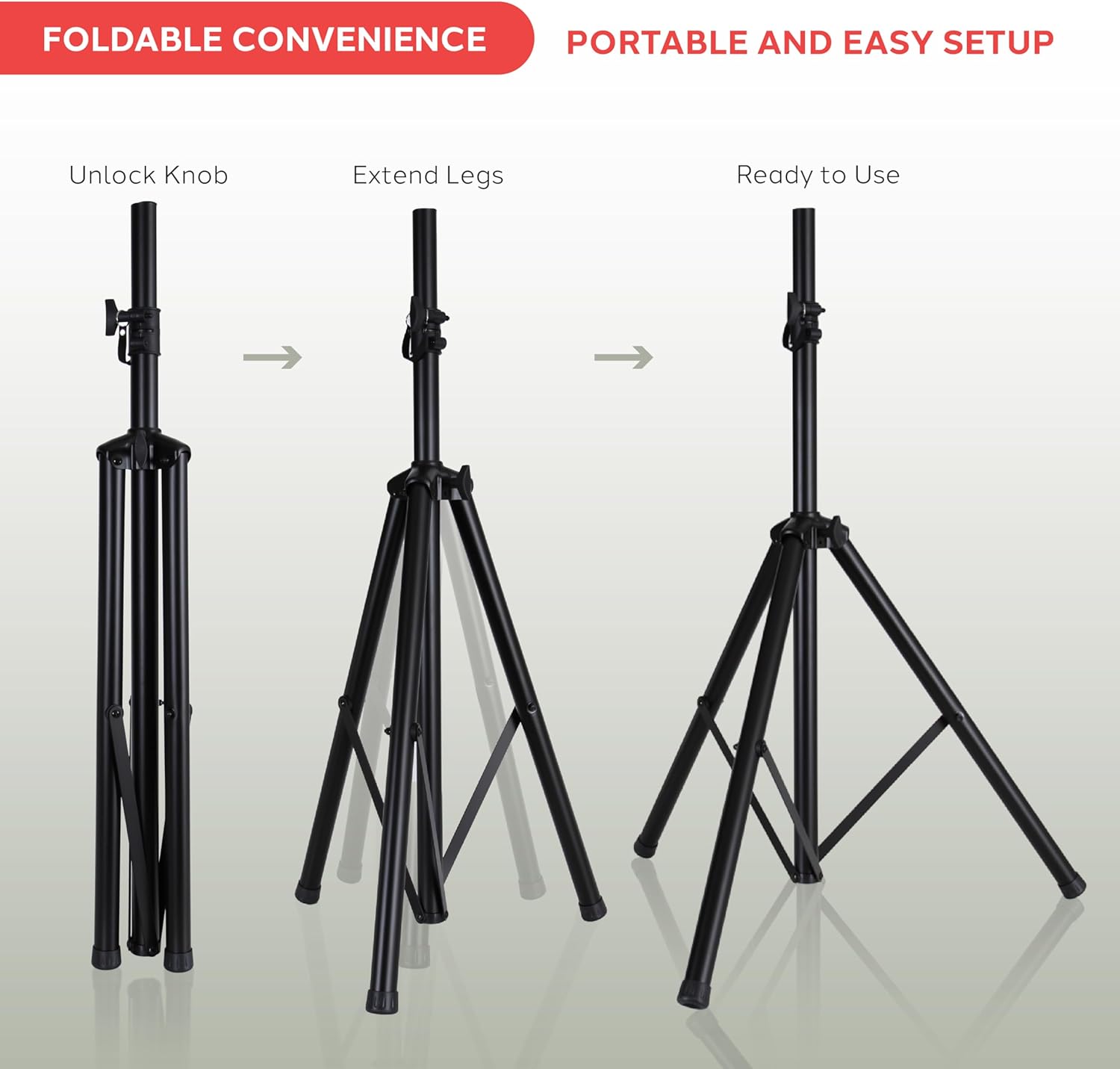 tripod speaker stands collapse easily to fit inside the bag for easy