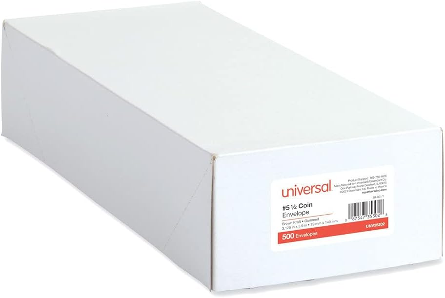 Universal #5 Round Flap Gummed Kraft Coin Envelope 3.13 in. x 5.5 in. - Light Brown - 500/Box (UNV35302)