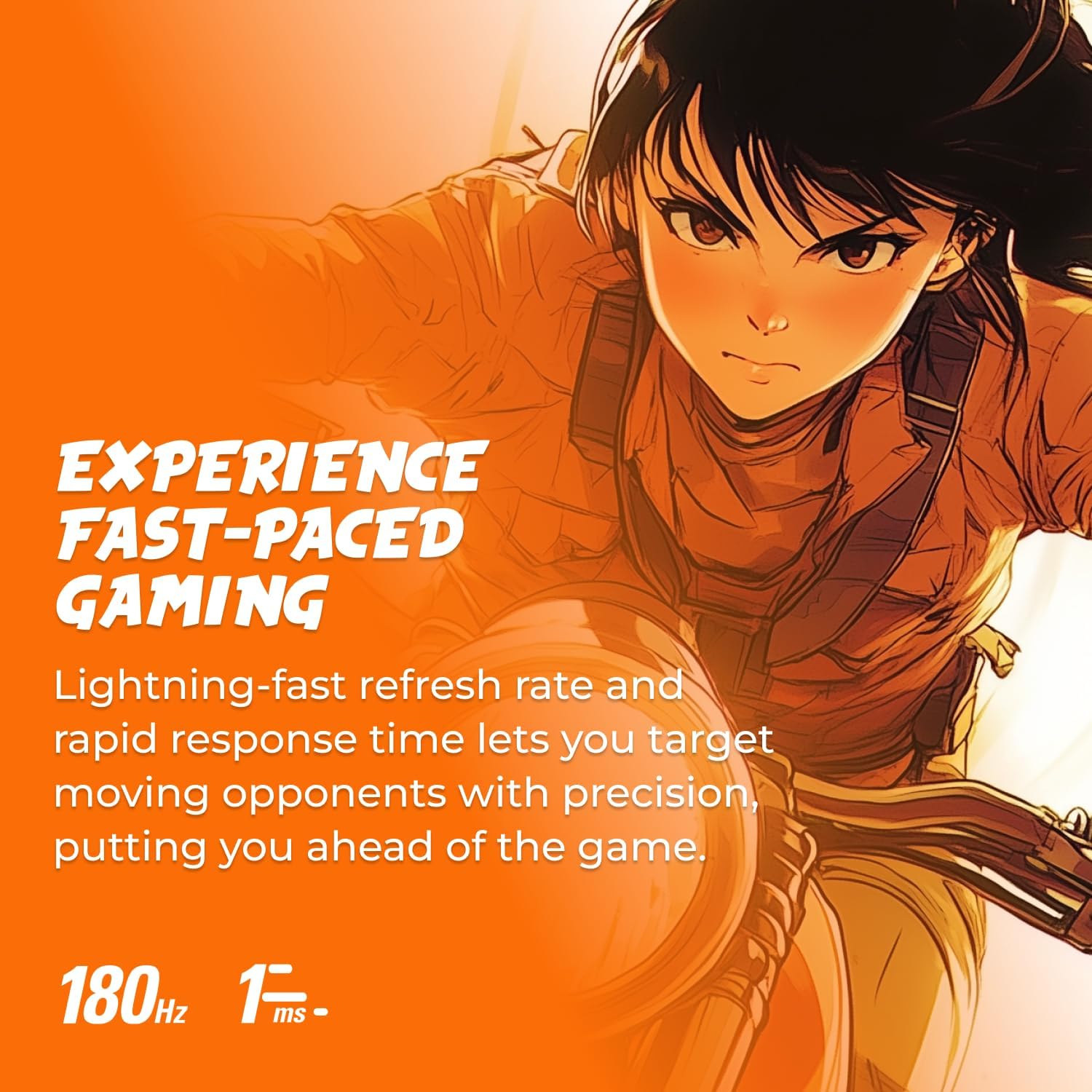 - Lightning-fast 180Hz (via DP1.4) refresh rate and rapid 1ms GtG response time lets you target moving opponents with precision, putting you ahead of the game. Fast-moving action and dramatic transitions will be rendered smoothly without the effects of ghosting