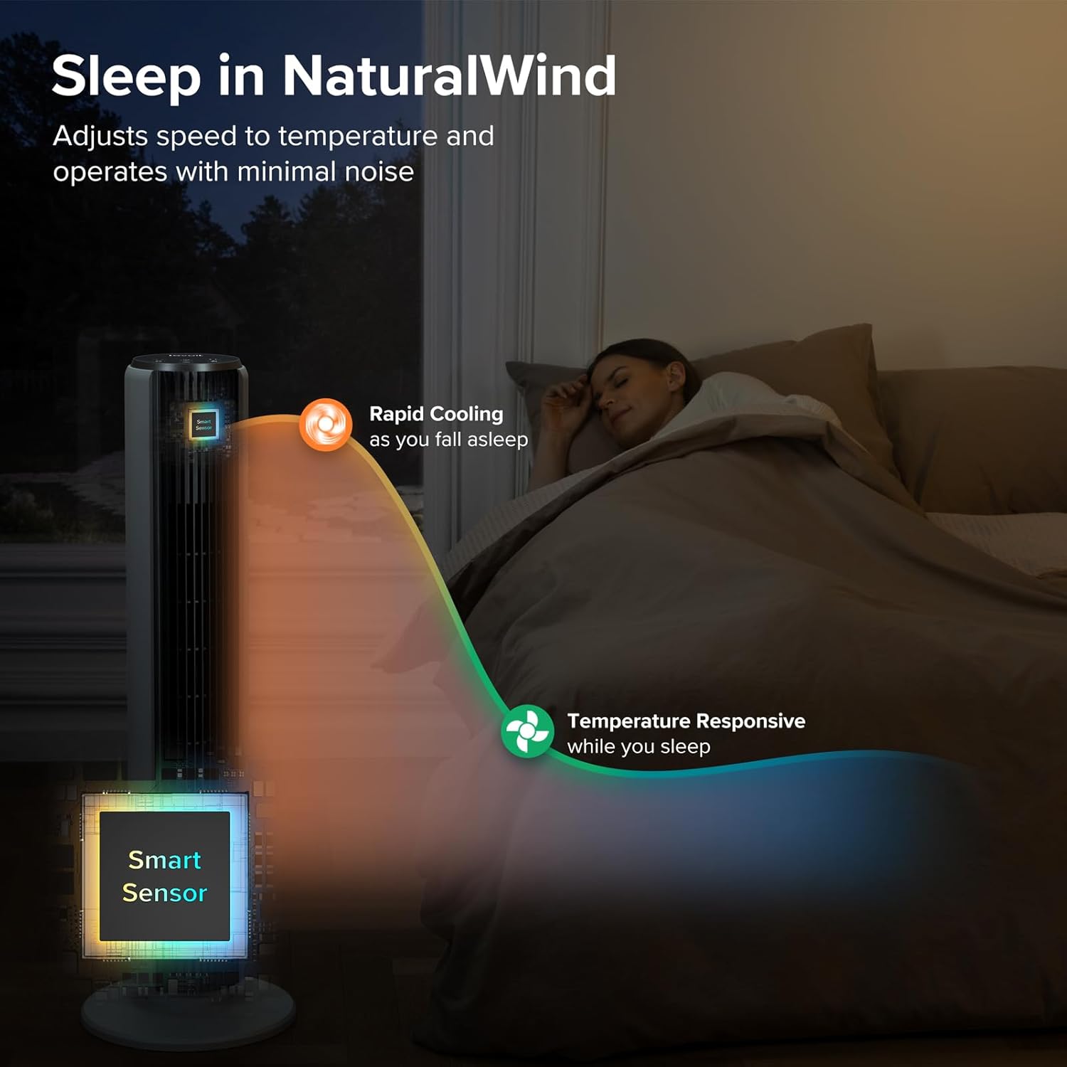 4 modes (Normal/Turbo/Sleep/Auto) and 5-speed settings, this fan adapts