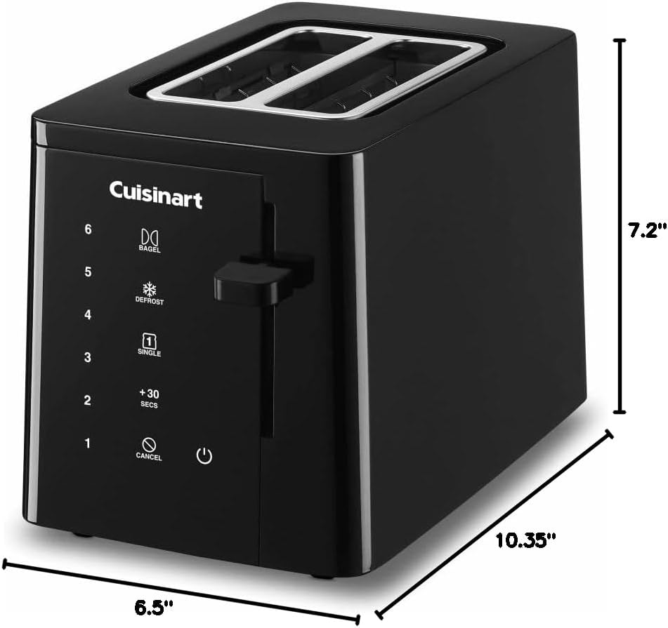 Bring modern convenience and style to your breakfast routine with the Cuisinart 2‑Slice Touchscreen Toaster. This sleek T‑Series toaster features a full touchpad control panel that remains hidden until you power it on. You can choose from six browning levels to get toast just the way you like it, and it also offers functions for Bagel, Defrost, Single Slice, and Cancel.