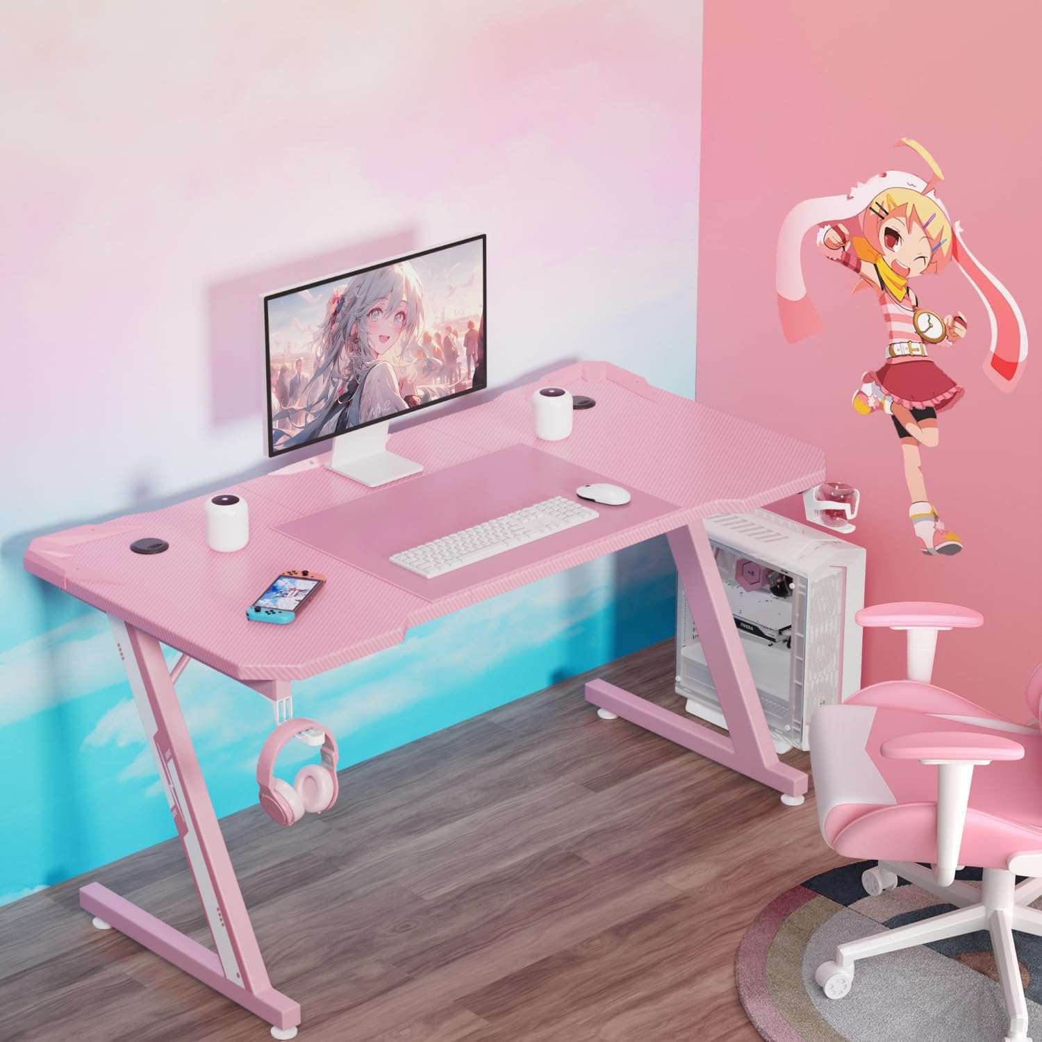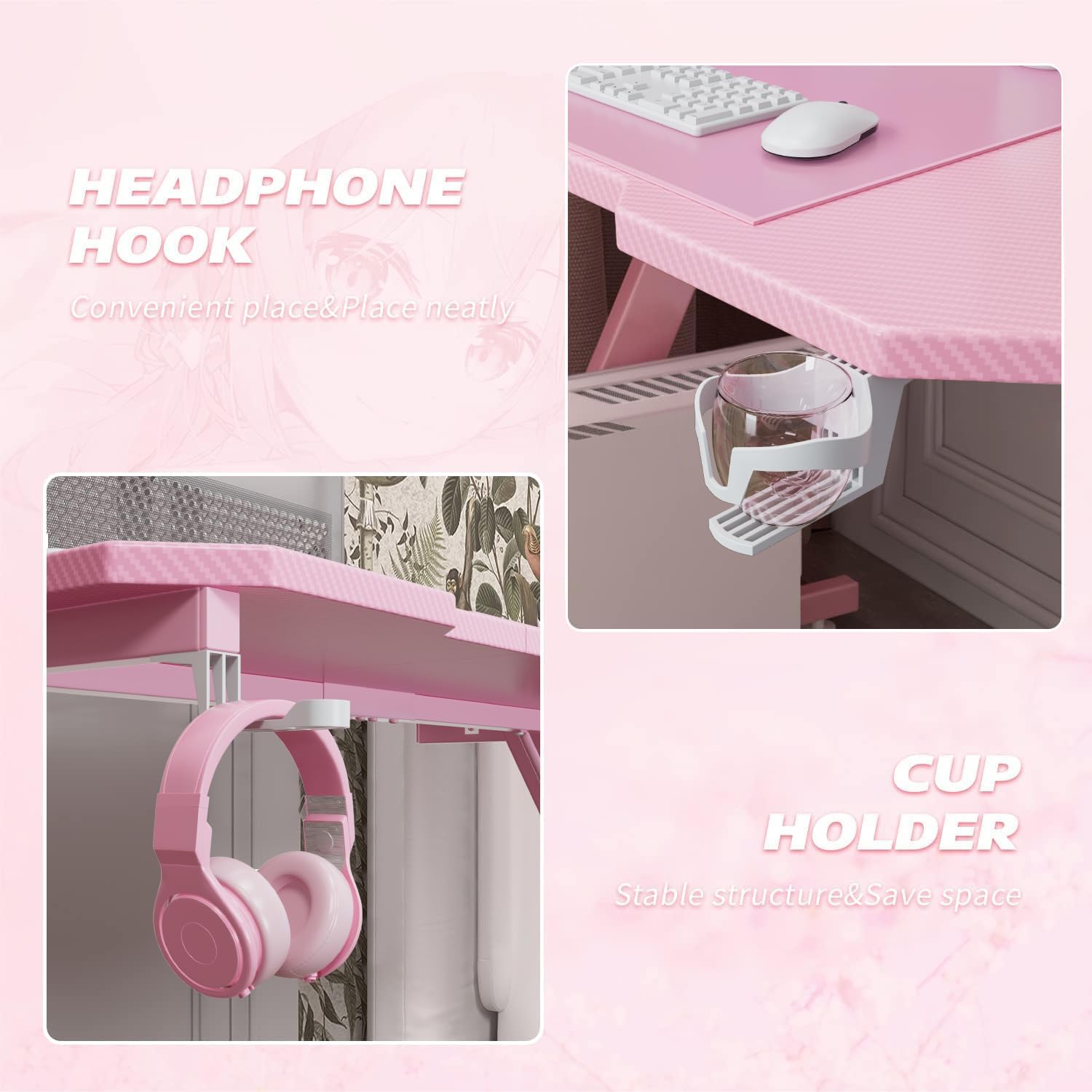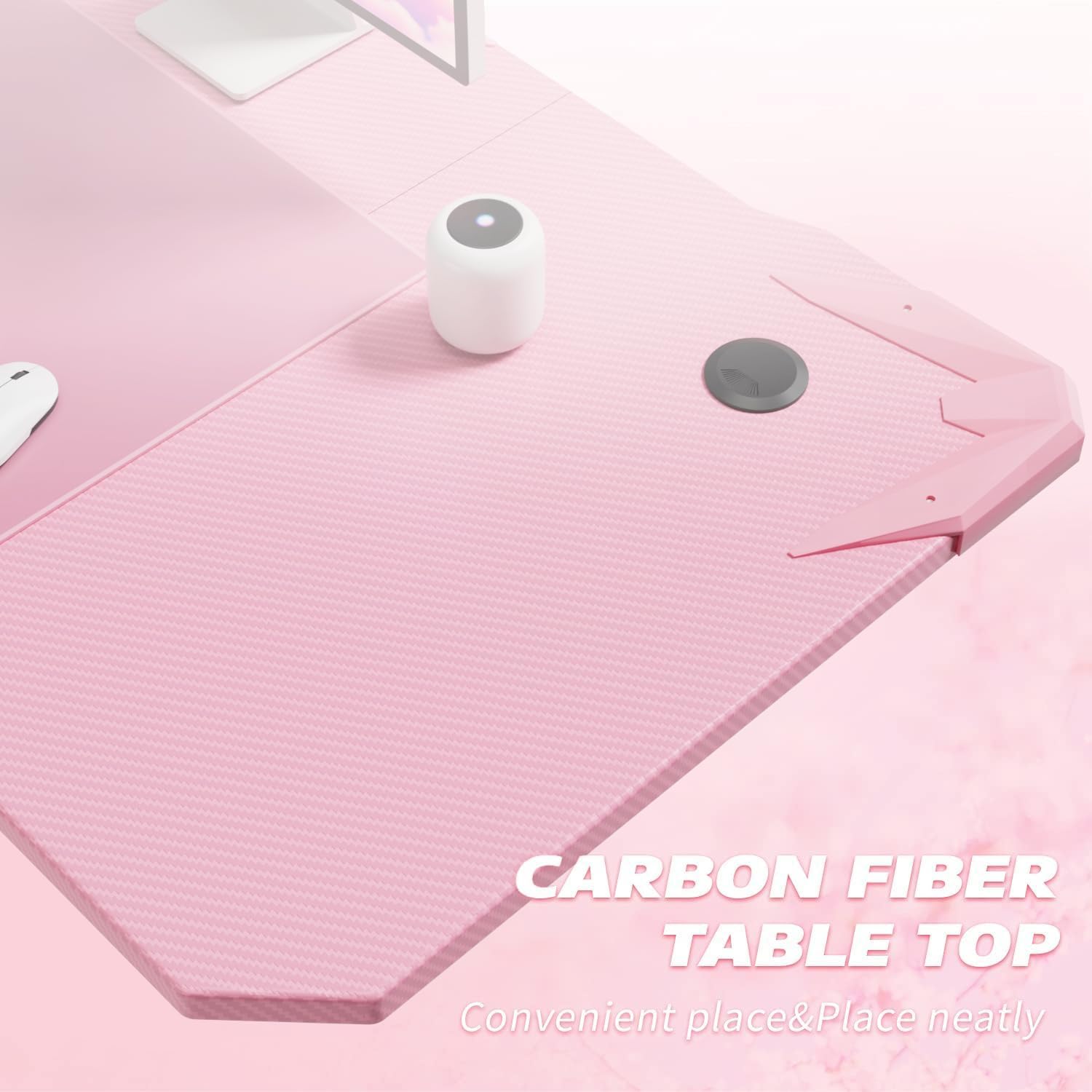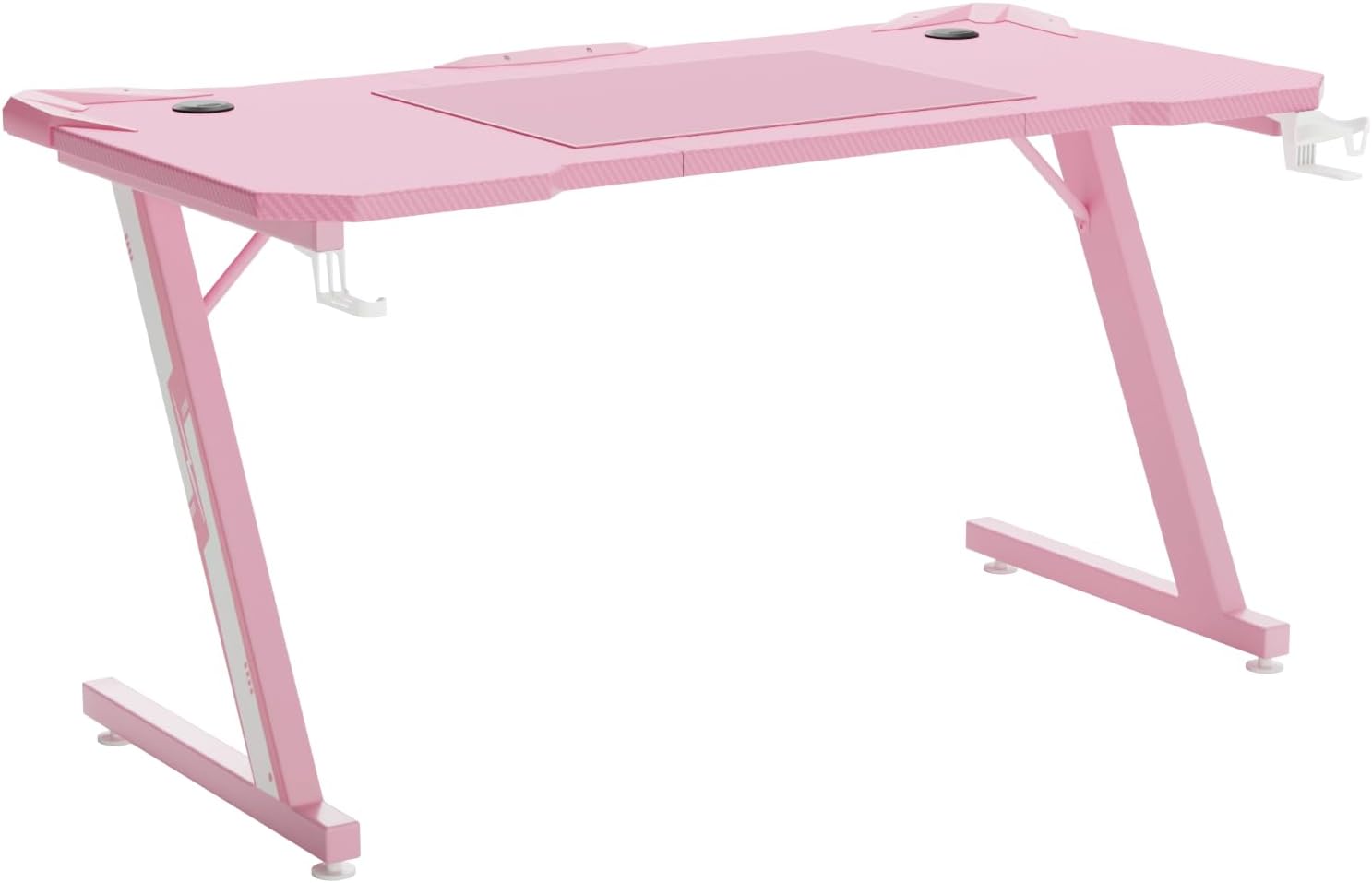 Homall 47 Inch Gaming Desk, Computer Desk with Cup Holder & Headphone Hook - Carbon fiber Pink