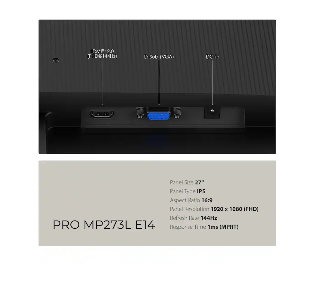 MSI Pro MP273L E14 27" IPS LCD FHD Monitor - 144Hz 1ms (HDMI, VGA)