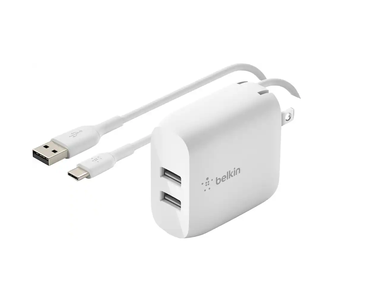 Belkin - 24W Dual Port USB Wall Charger with USB-C Cable - Fast Charging for iPhone, Galaxy , Pixel & More - White