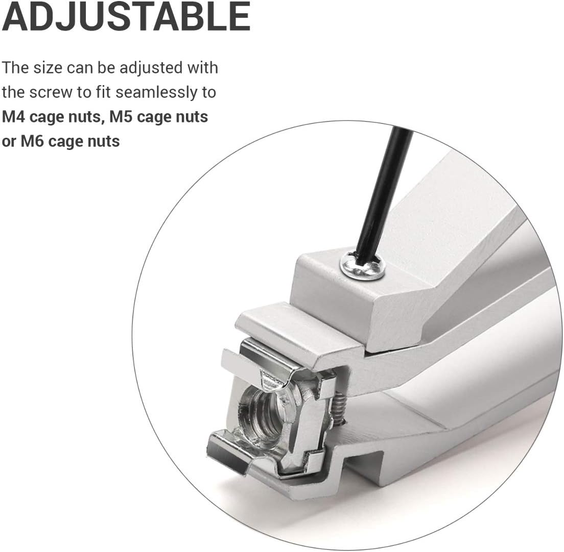 The size can be adjusted with the screw to fit seamlessly to M4 cage nuts, M5 cage nuts or M6 cage nuts.