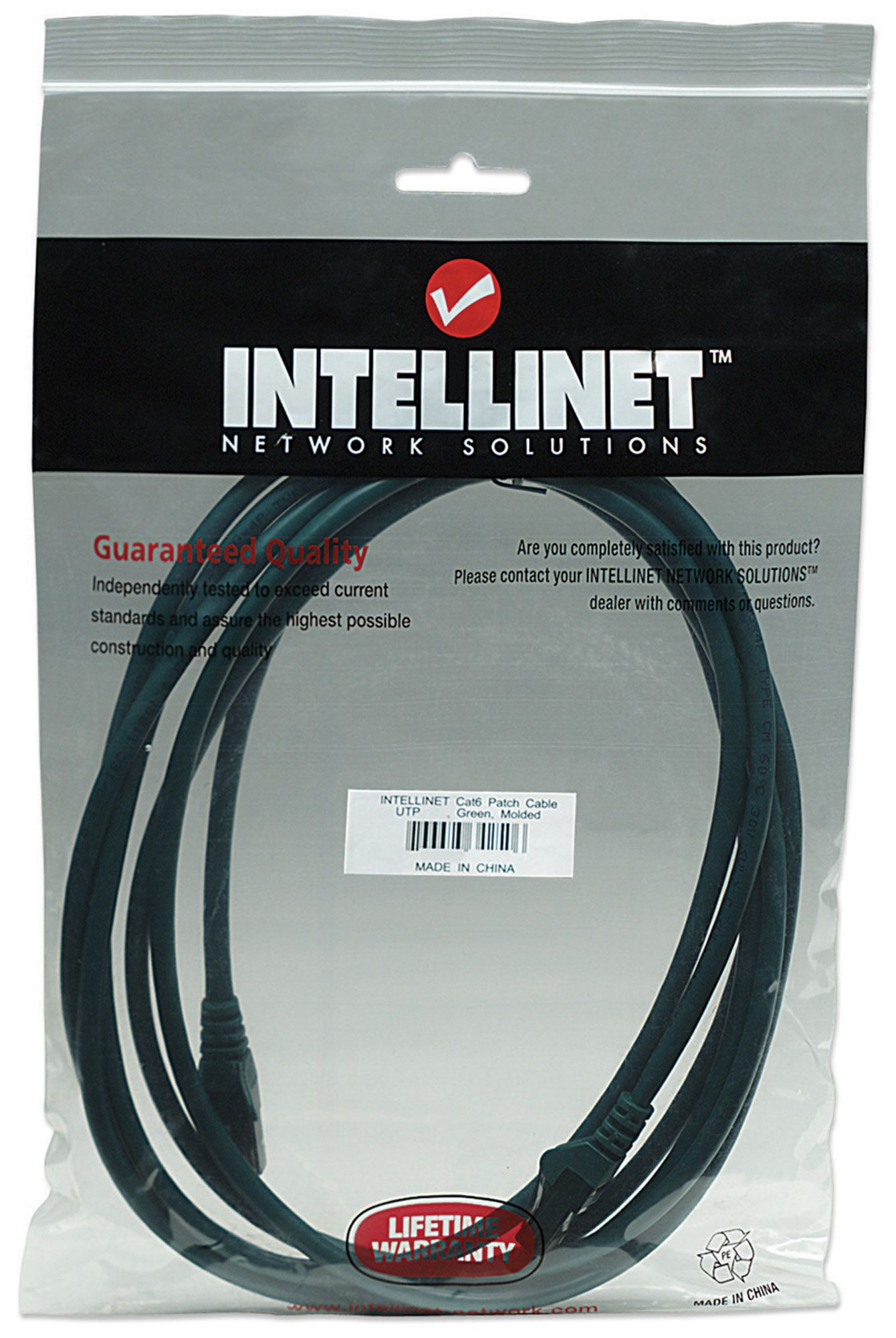 Intellinet 14-Feet Network Solutions Cat6 RJ-45 Male UTP Patch Cable, Green (343718)