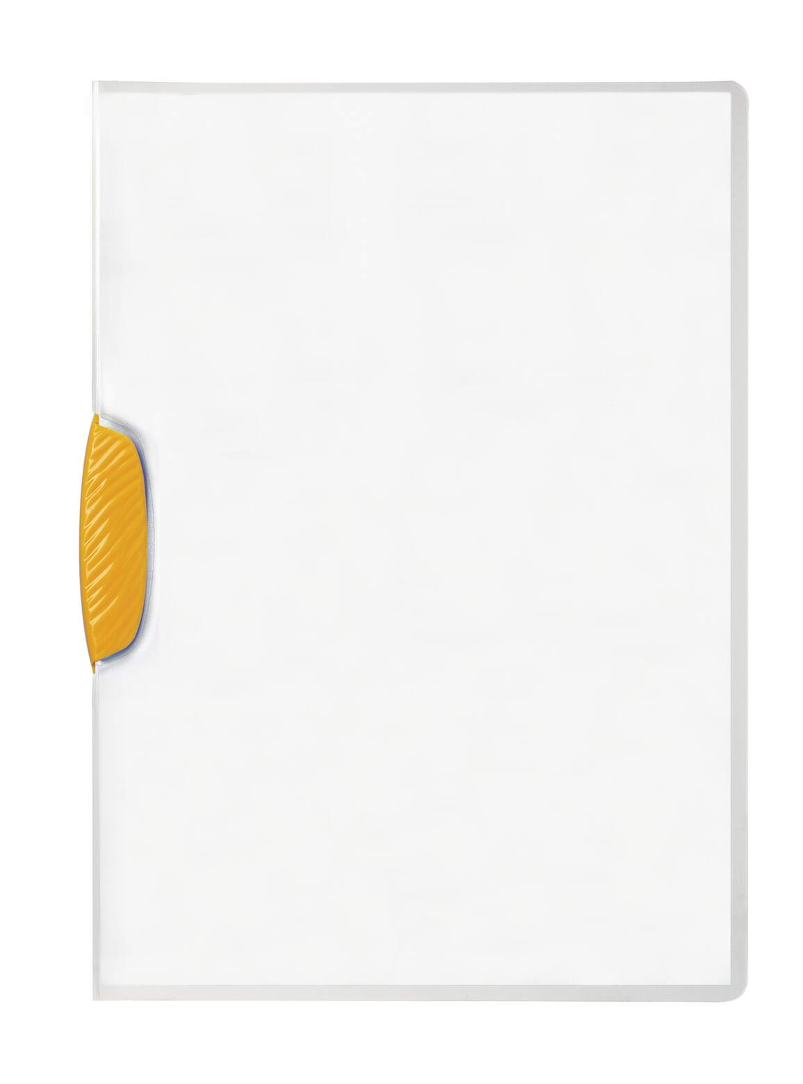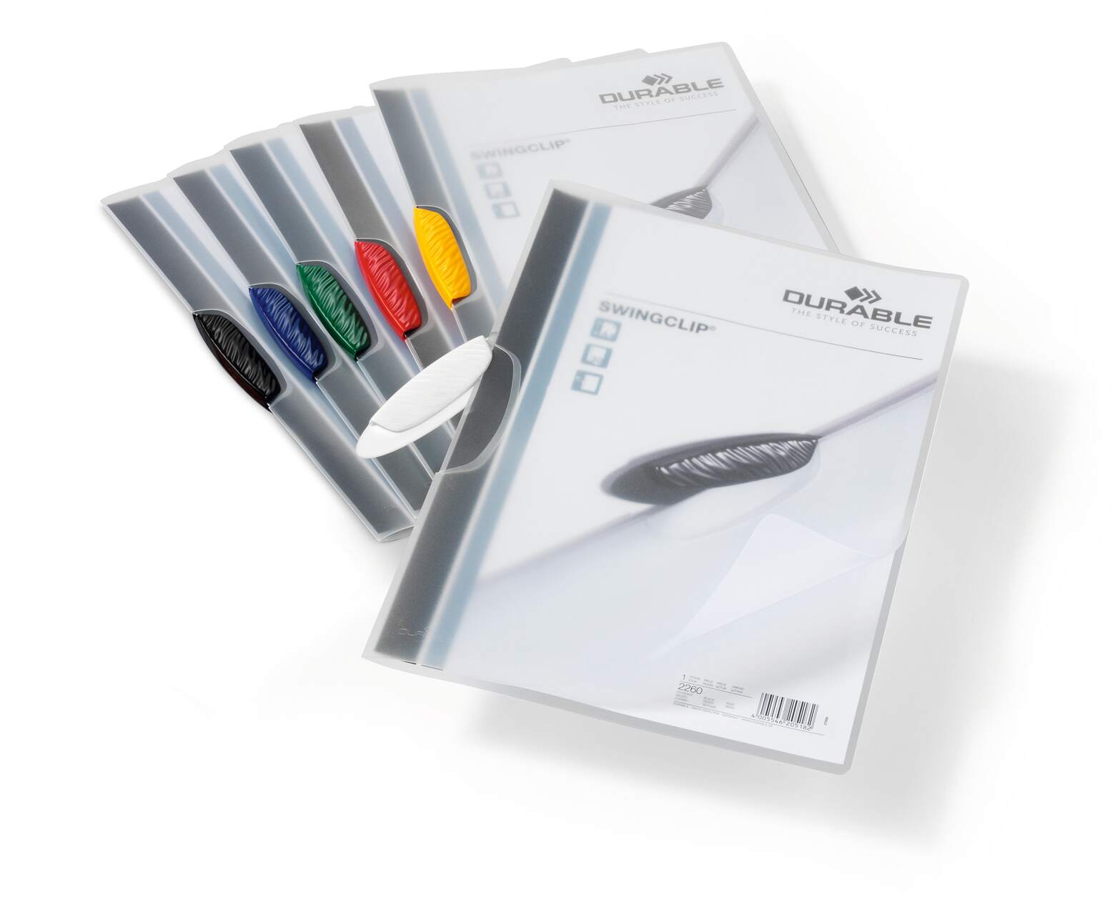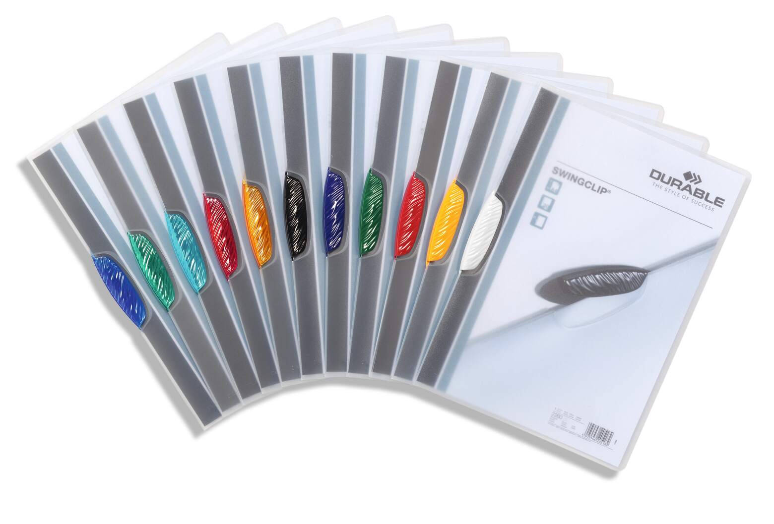 Elegant contoured clip binds documents in seconds then swings out for quick page changes. Front cover opens flat for easy viewing. Extra-rugged polypropylene is transparent on both sides.