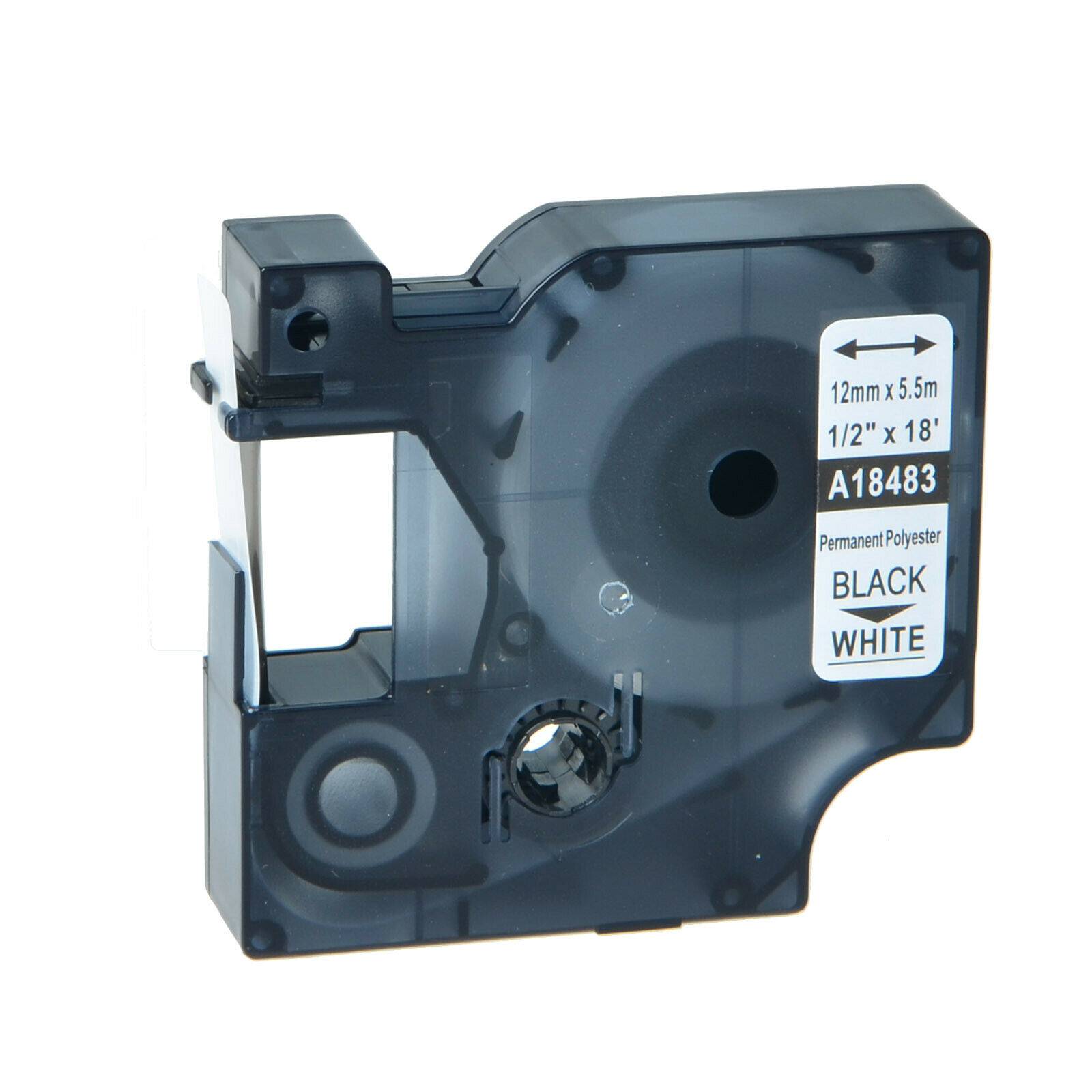 - These flexible labels have no shape memory, so they wrap easily around curved surfaces and stay that way. Industrial-strength adhesive labels won't curl or fall off. Easy-to-peel split back design makes applying labels quick and easy. Thermal transfer printing technology, so label text won't smudge, smear, or fade. Continuous label cassettes let you create sharp, easy-to-read labels of just about any length. Made in Belgium. Use with LabelManager, LabelPoint, LabelWriter DUO and older DYMO label printers.Durable and smear-proof. Resistant to chemicals, solvents, grease, heat, moisture and other harsh elements. Industrial-strength adhesive for labels that stick and stay stuck. Easy-to-peel split backing for simple application. Label Size - text: 1/2" x 18 ft.; Label Color(s): White; Machine Compatibility: Label Makers; Printed Text Color(s): Black.