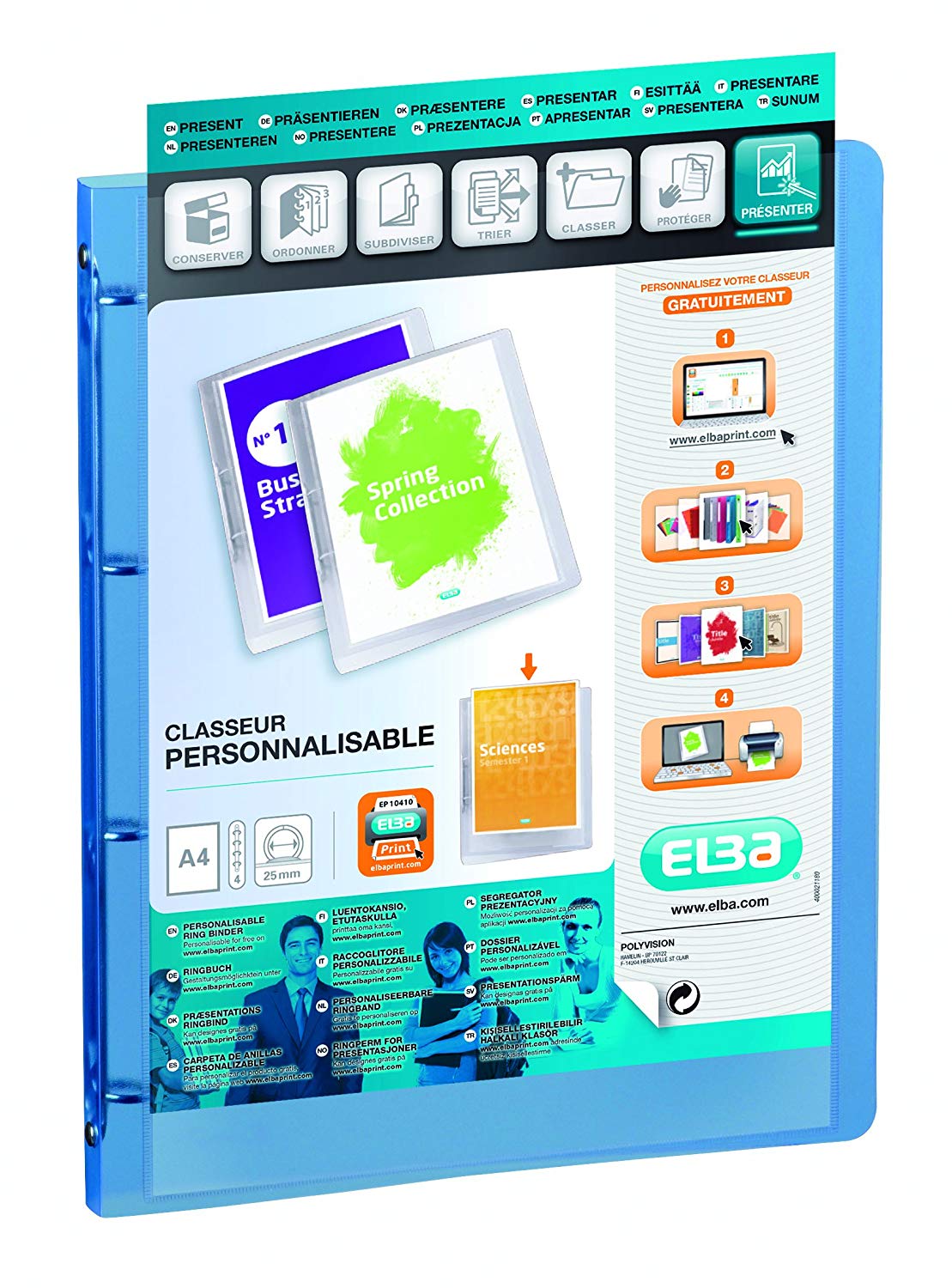 - A4 plastic ring binder with 4-ring O-mechanism in trendy colors.