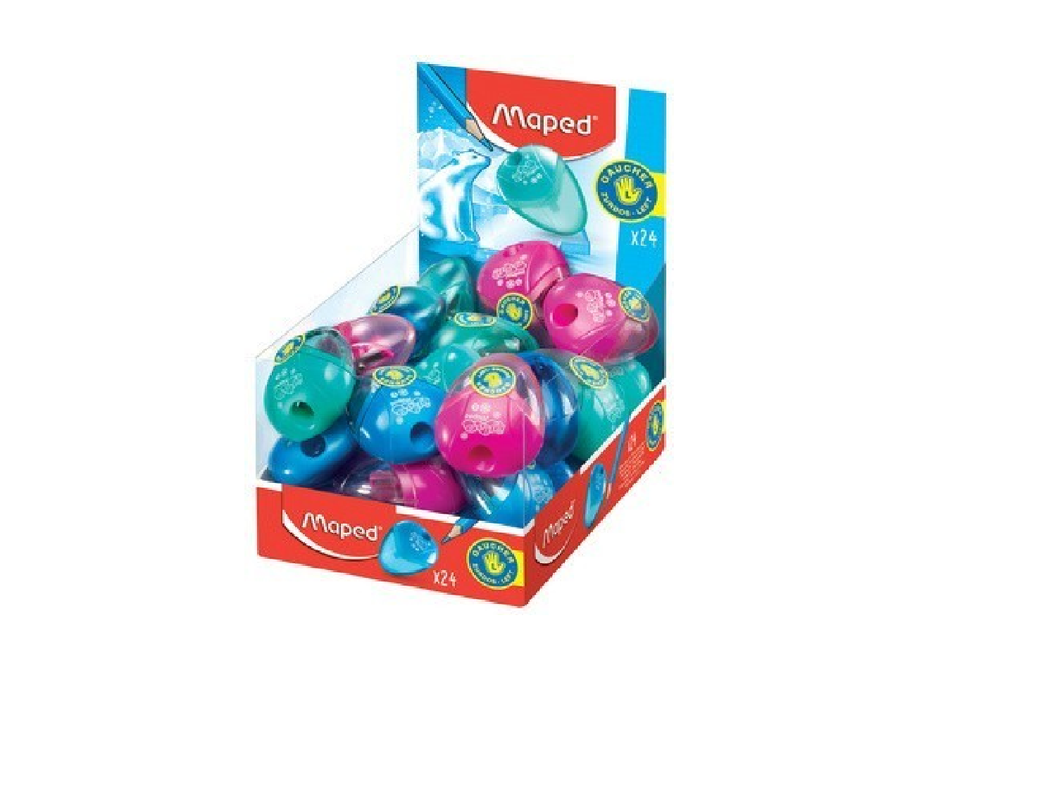 1 Plastic Sharpener, Maped Igloo, Interior metal and plastic cover. Deposit contains chip. Assorted colors.