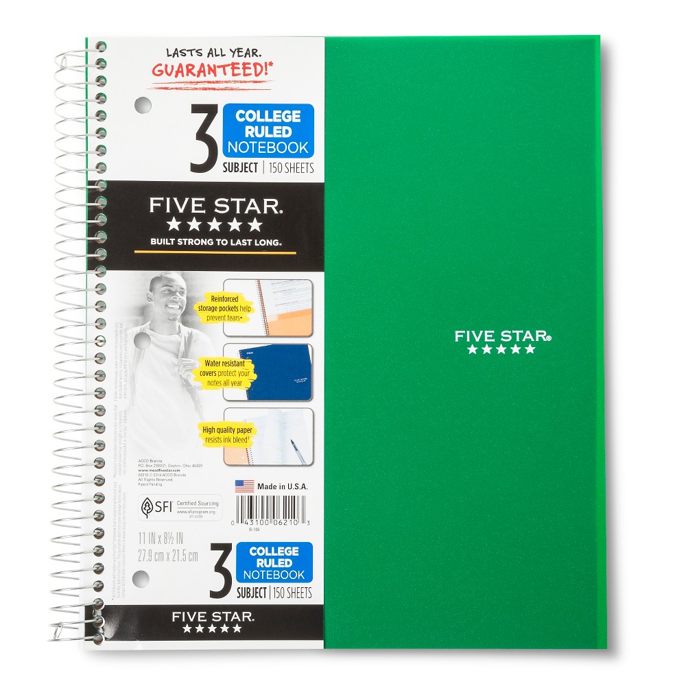 - Two-subject plastic cover notebook has 100 college-ruled, 9.5 x 6 inch sheets