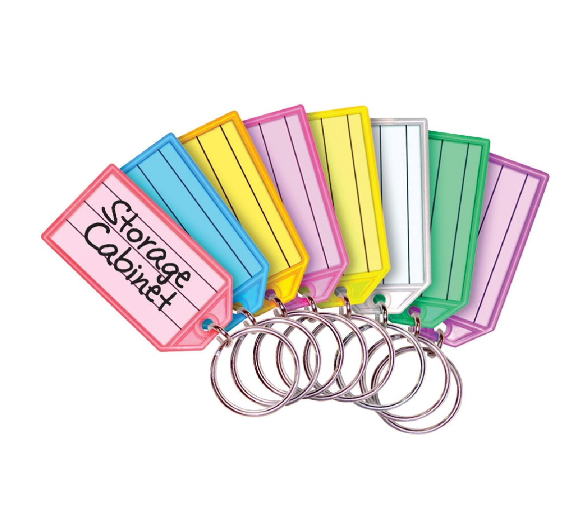 Replacement key tags are designed for MMF Industries Multicolored Key Rack. Key tags are designed to fit snugly in the rack so they won't fall out. For identification, simply lift the cover of the tag and write on the paper insert.