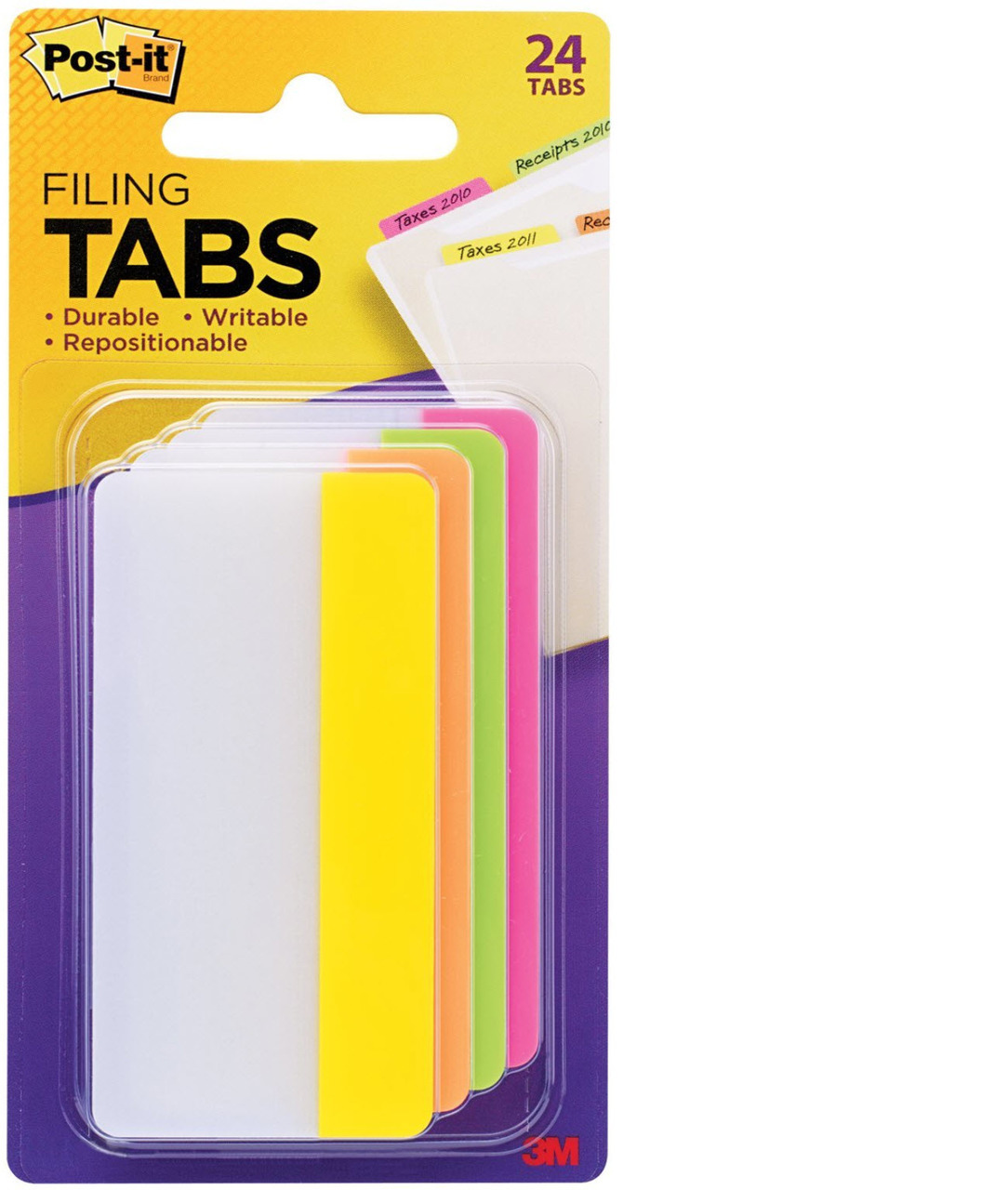 Post-it® Tabs File Tabs, 3 x 1 1/2, Assorted Brights, 24/Pack