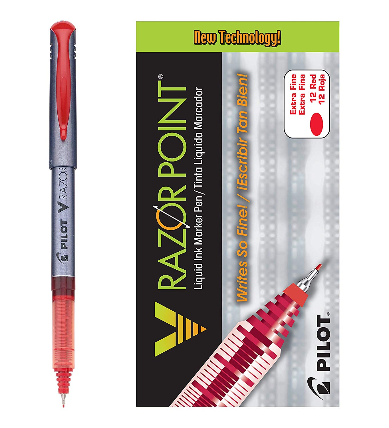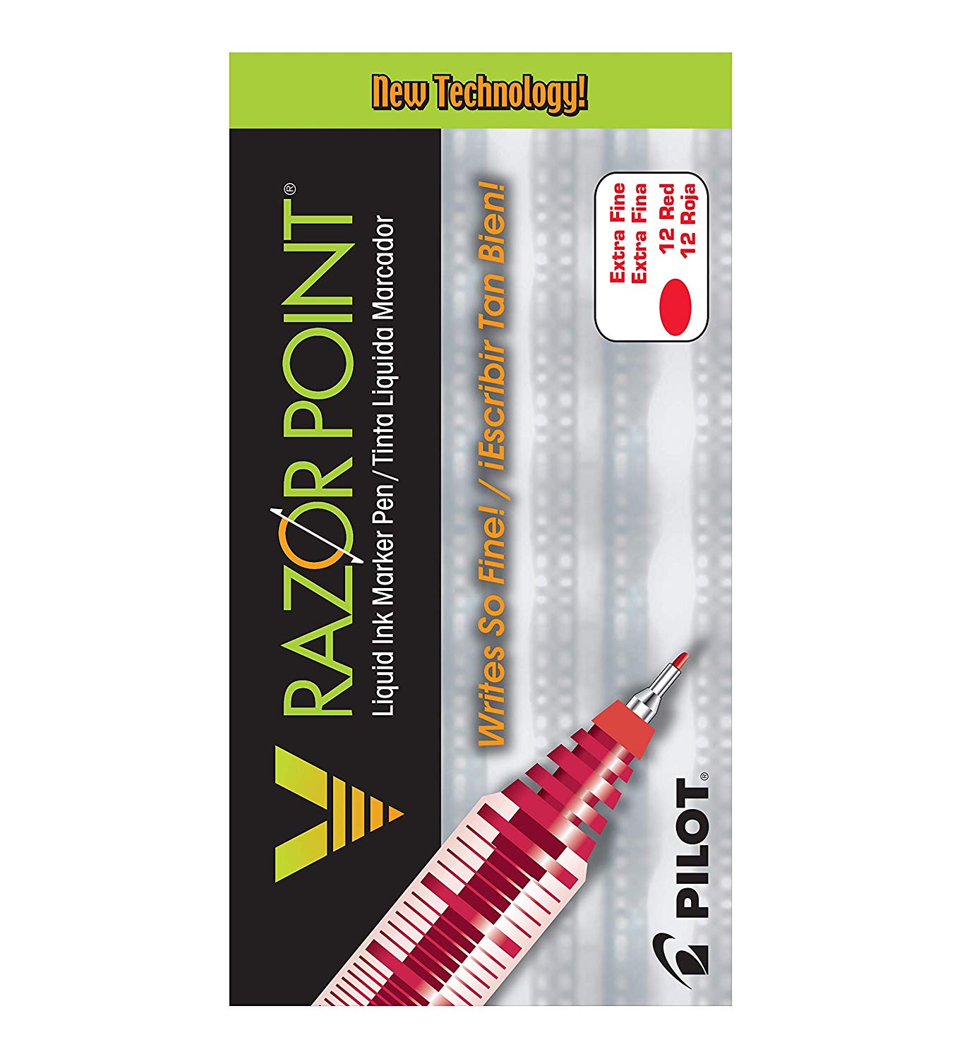 Writes smooth, clean lines Unique liquid ink formula Extra fine 0.5mm tough, plastic point for smooth writing Visible, long lasting ink supply Box of 12 pens with red ink