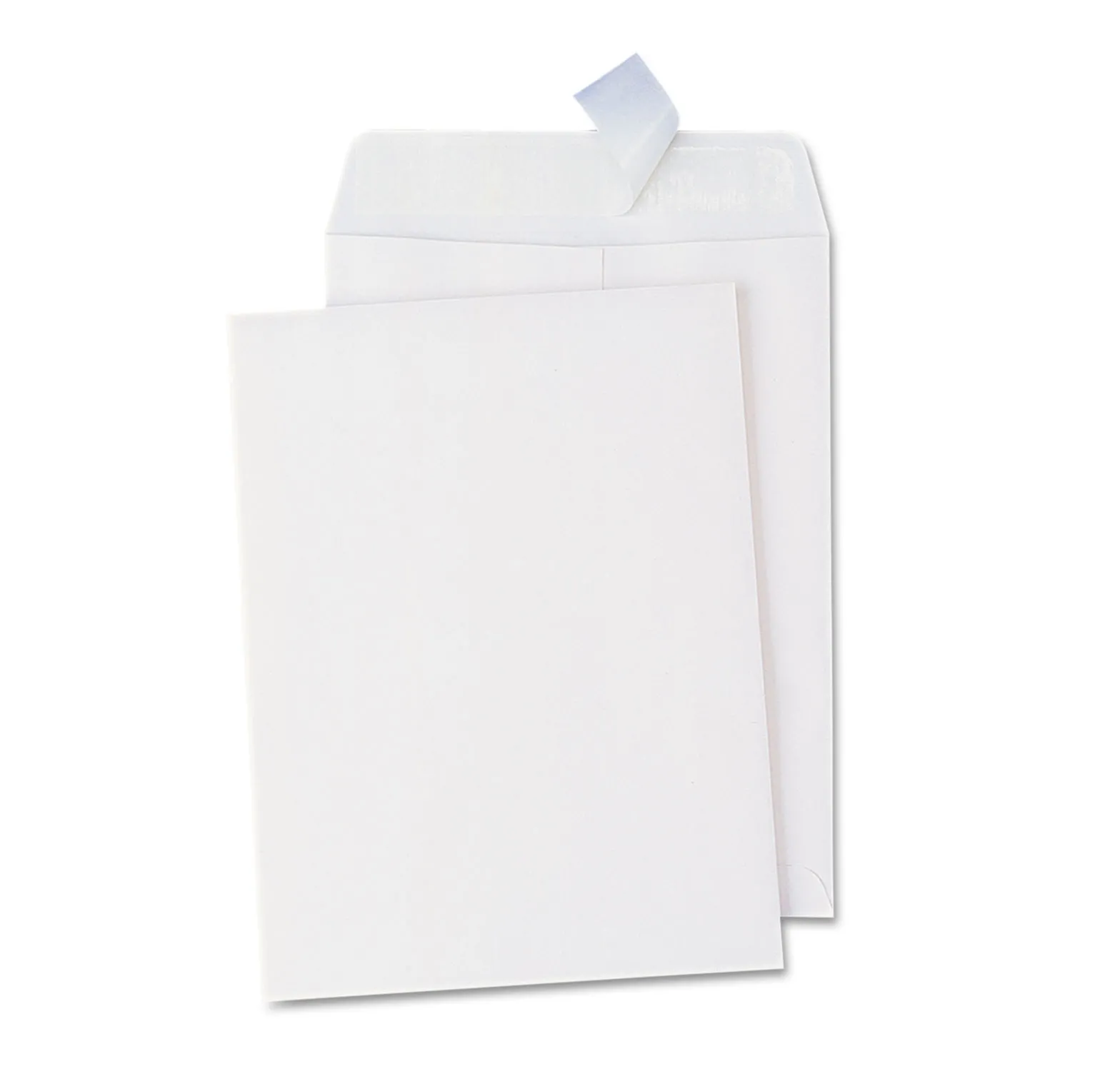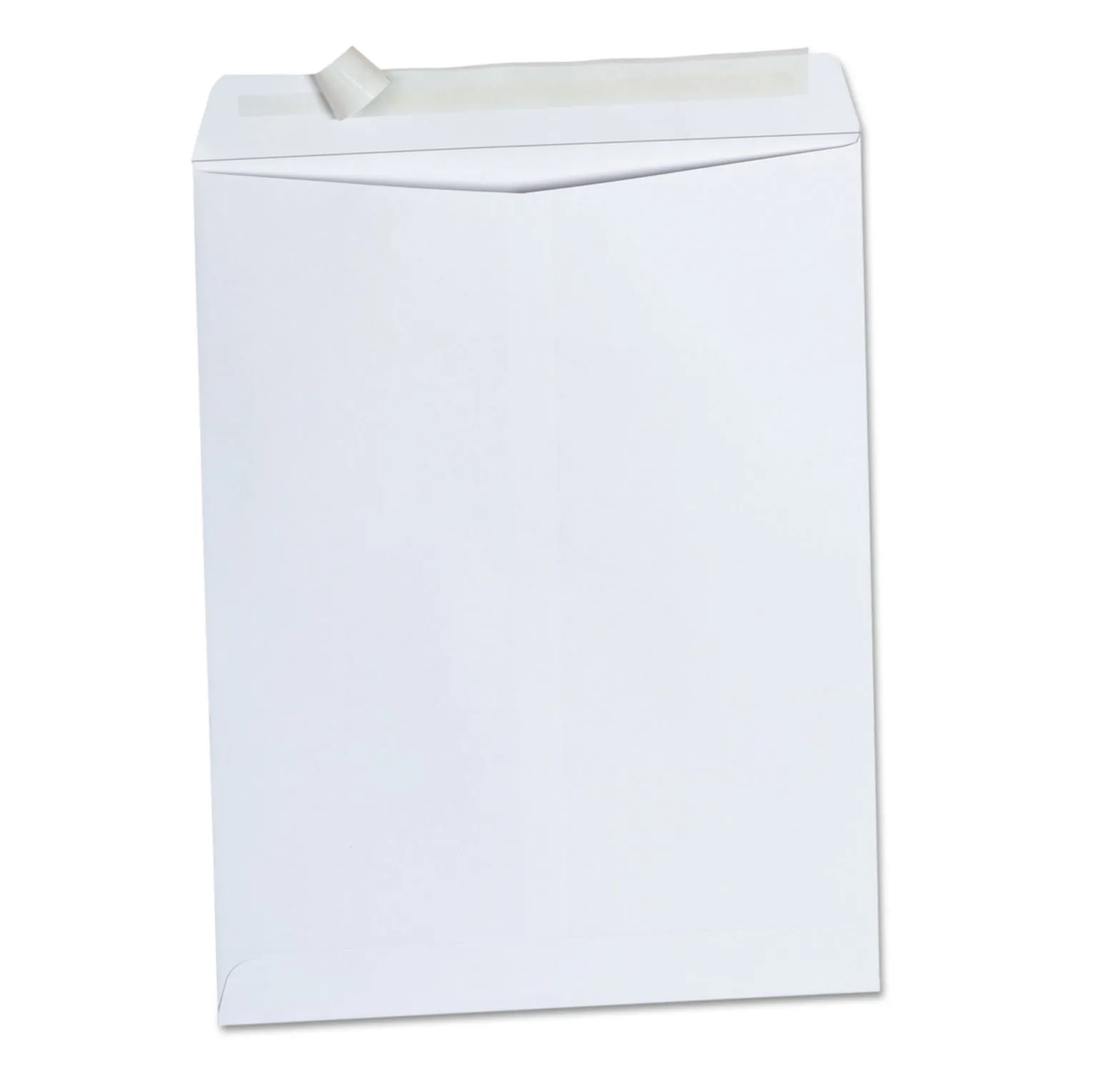 UNV42102 100/PACK ENVELOPE,10X13,CAT,WHITE. No moisture needed to seal, simply raise the lower flap and press. Unique double-flap design keeps the gum from sticking before use. Double flap keeps contents secure