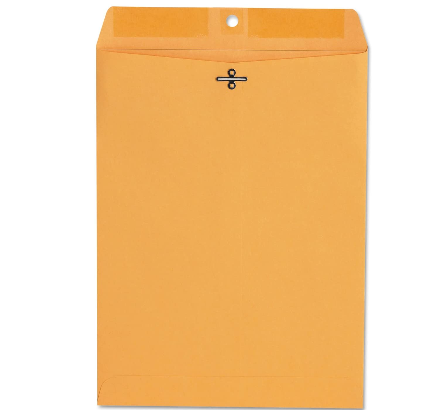 Kraft Clasp Envelope Durable heavyweight Kraft stock resists rips and tears. Reinforced eyelet and two prong clasp stands up to regular use. Gummed flap delivers a secure seal. Durable heavyweight Kraft stock resists rips and tears. Reinforced eyelet and two prong clasp stands up to regular use. Gummed flap delivers a secure seal.