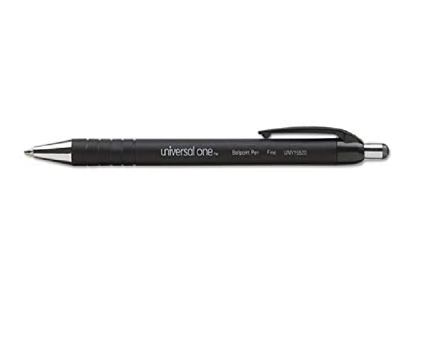 - Universal One Comfort Grip Ballpoint Retractable Pen, Black Ink, Fine, Dozen