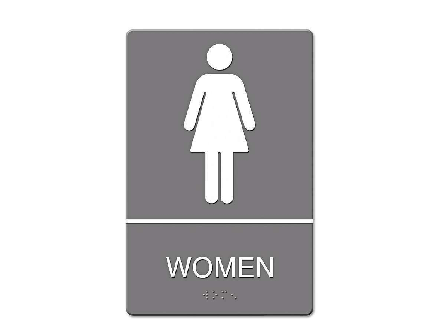 Women’s restroom. Raised tactile graphics with grade 2 braille. Meets