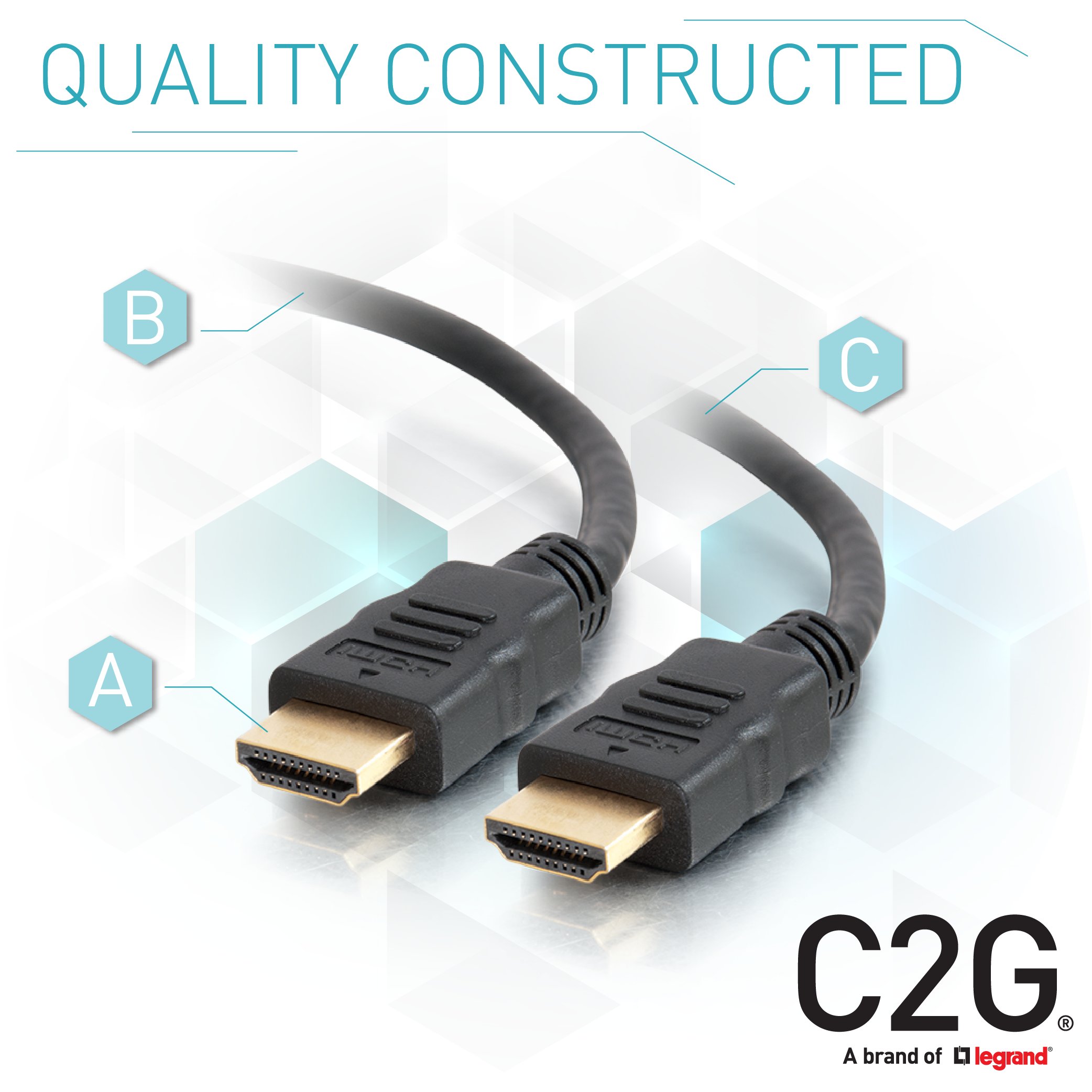 The C2G High Speed HDMI with Ethernet Cable is perfect for home theater or desktop audio video applications requiring high speed HDMI features and video resolutions up to 4k (2160p). The Ethernet capabilities of the cable allow a user to connect multiple Ethernet enabled HDMI devices through a single Ethernet connection for accessing interactive online content or updating device firmware. This fully-functional, high bandwidth cable is tested to perform at industry standards and is backed by a lifetime warranty. This cable can be utilized for network switch stacking with compatible equipment. Experience the latest HDMI features including