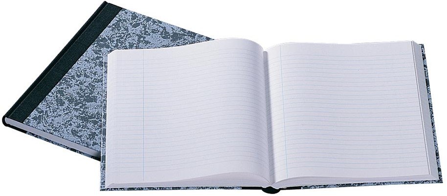 Hard cover notebooks. Wood-free, blue ruled paper suitable for handwriting.