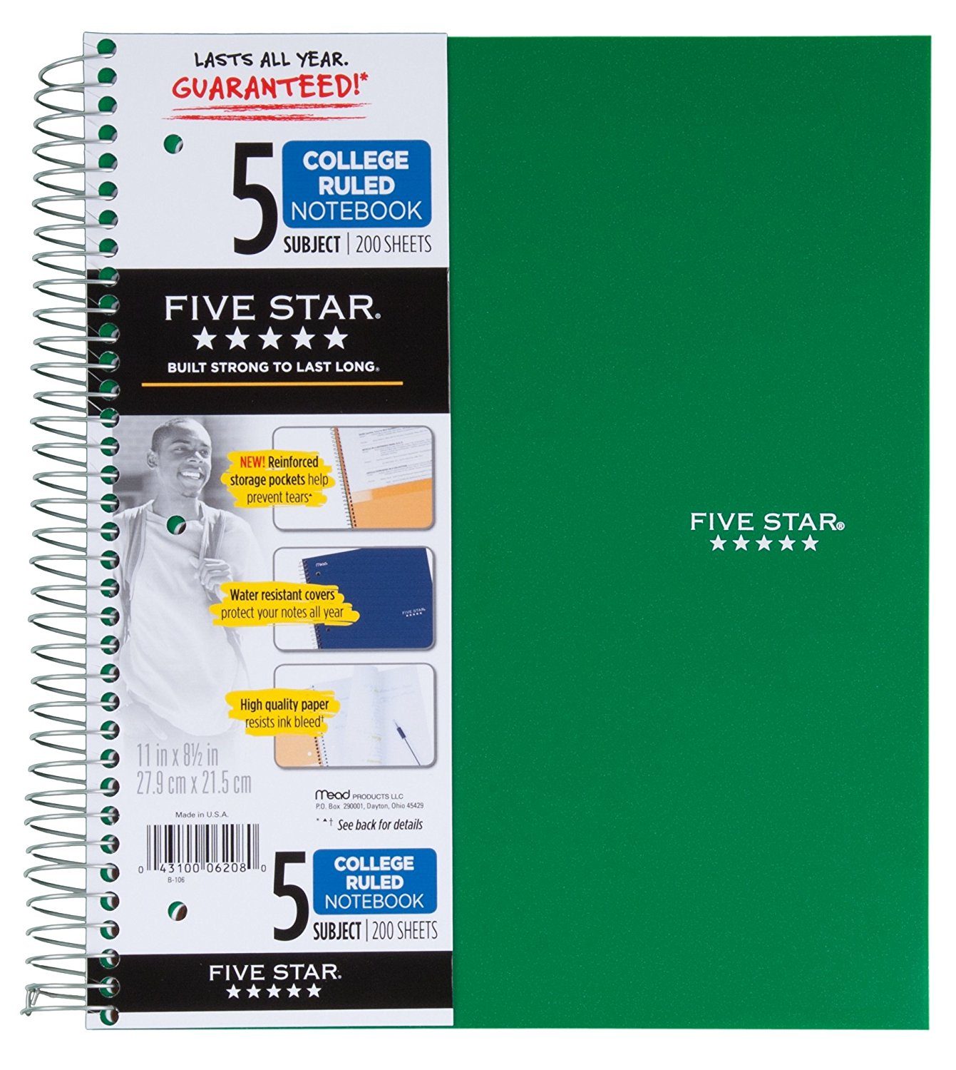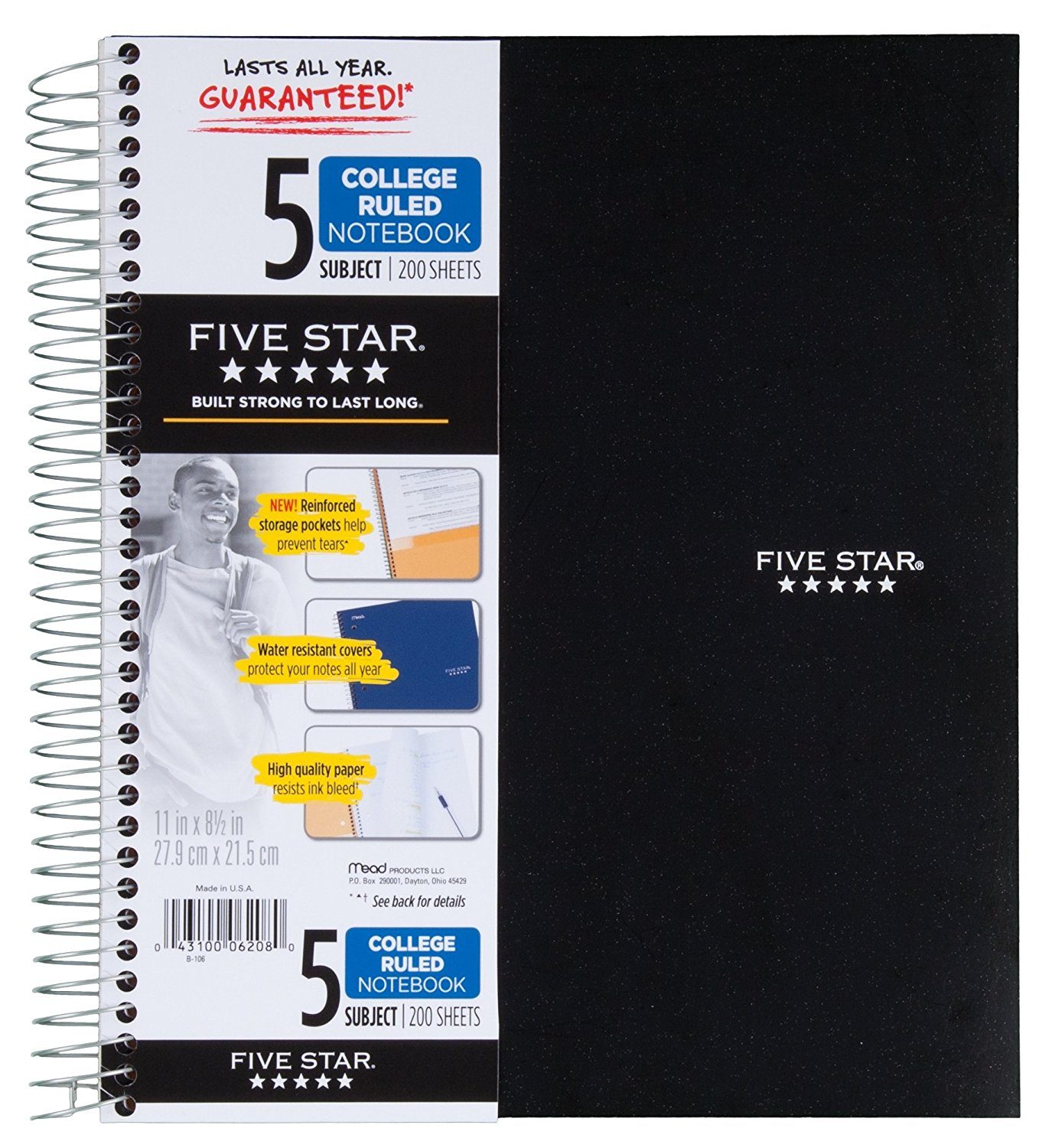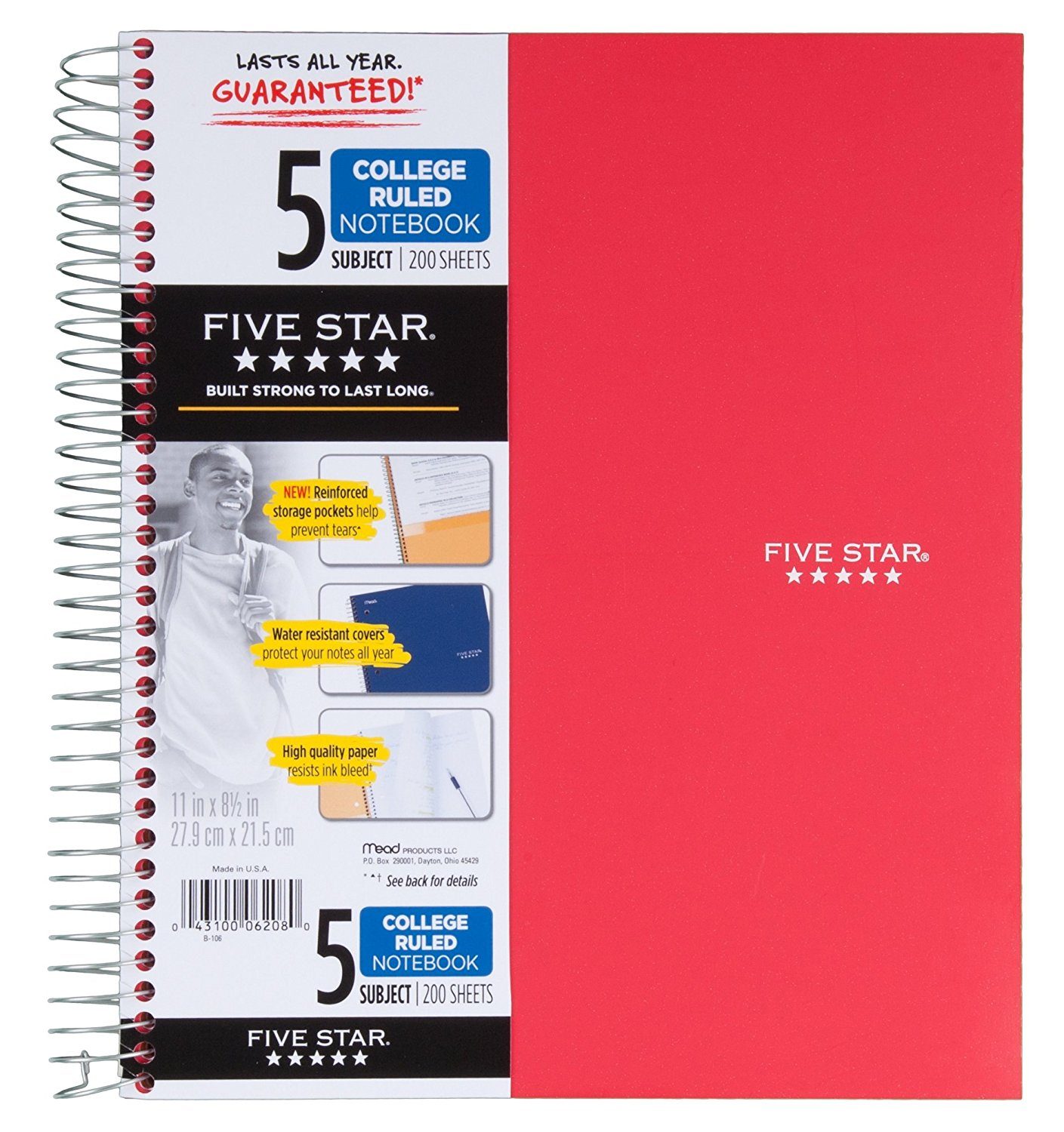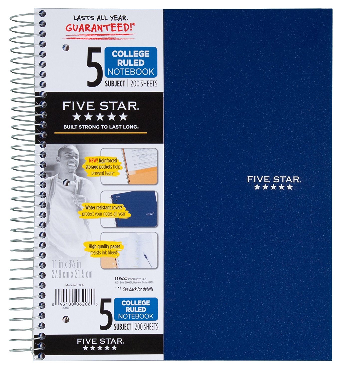 - 5 subject purple notebook contains 200 college ruled sheets that are ink bleed resistant.