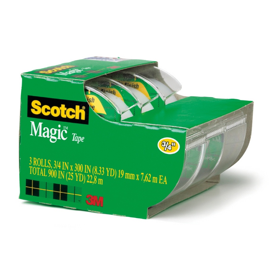 Scotch Magic Tape, 3 Rolls, Numerous Applications, Invisible, Engineered for Repairing, 3/4 x 300 Inches, Dispensered (3105)