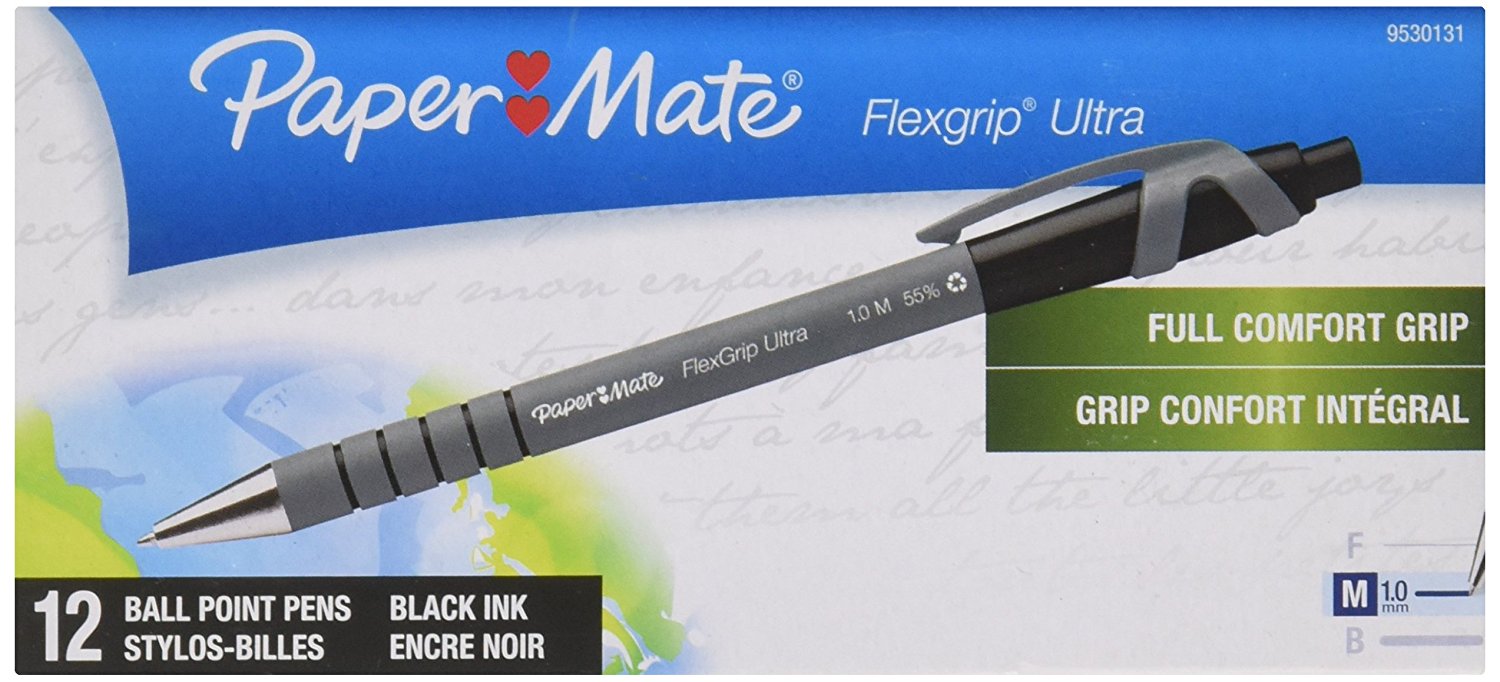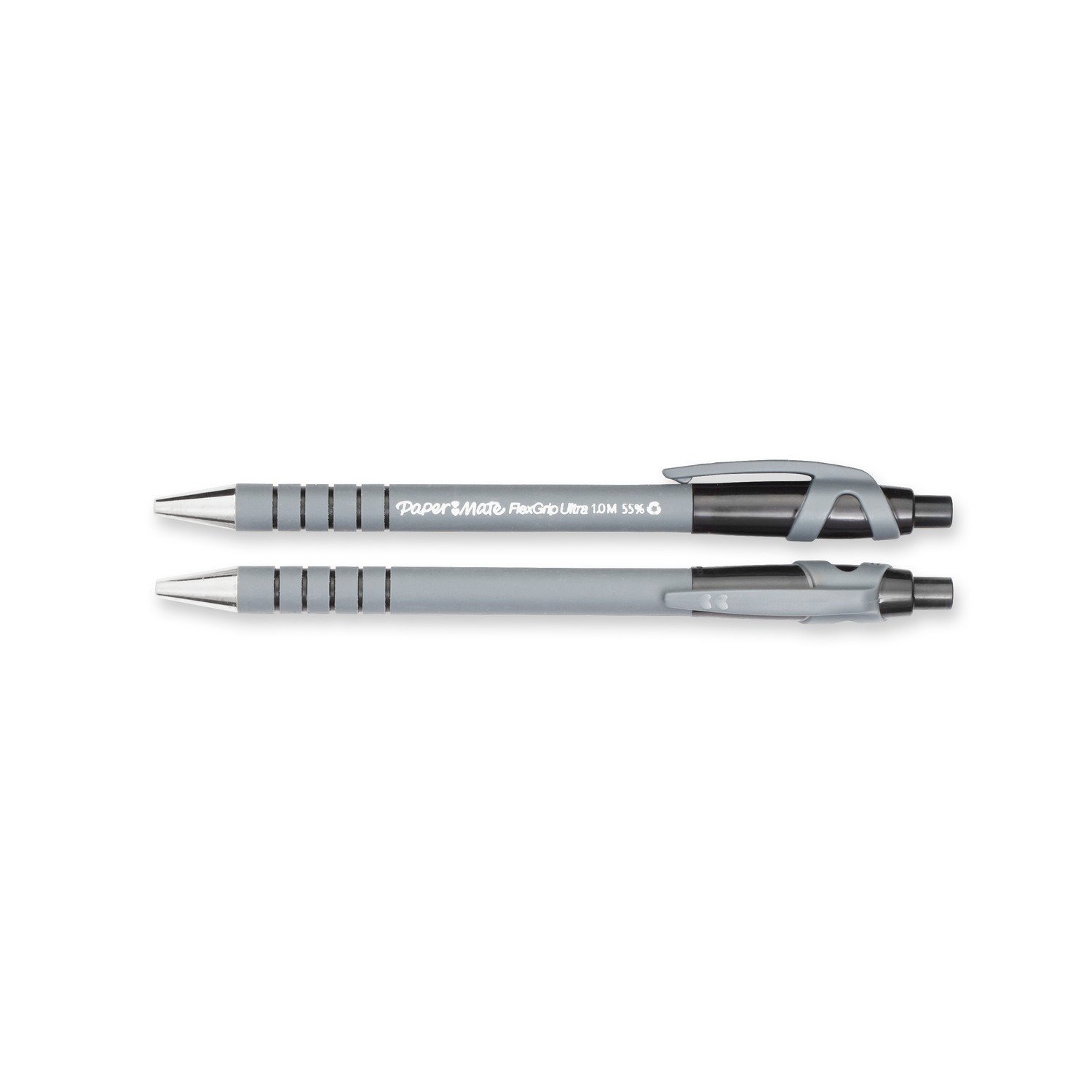 FlexGrip Ultra Ballpoint Pen Retractable, Medium 1 mm, Black Ink, Black/Gray Barrel 12X