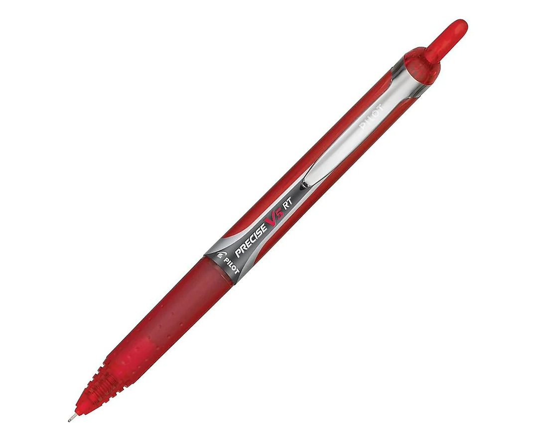 Precise V5RT Roller Ball Pen Retractable, Extra-Fine 0.5 mm, Red Ink, Red Barrel 12x