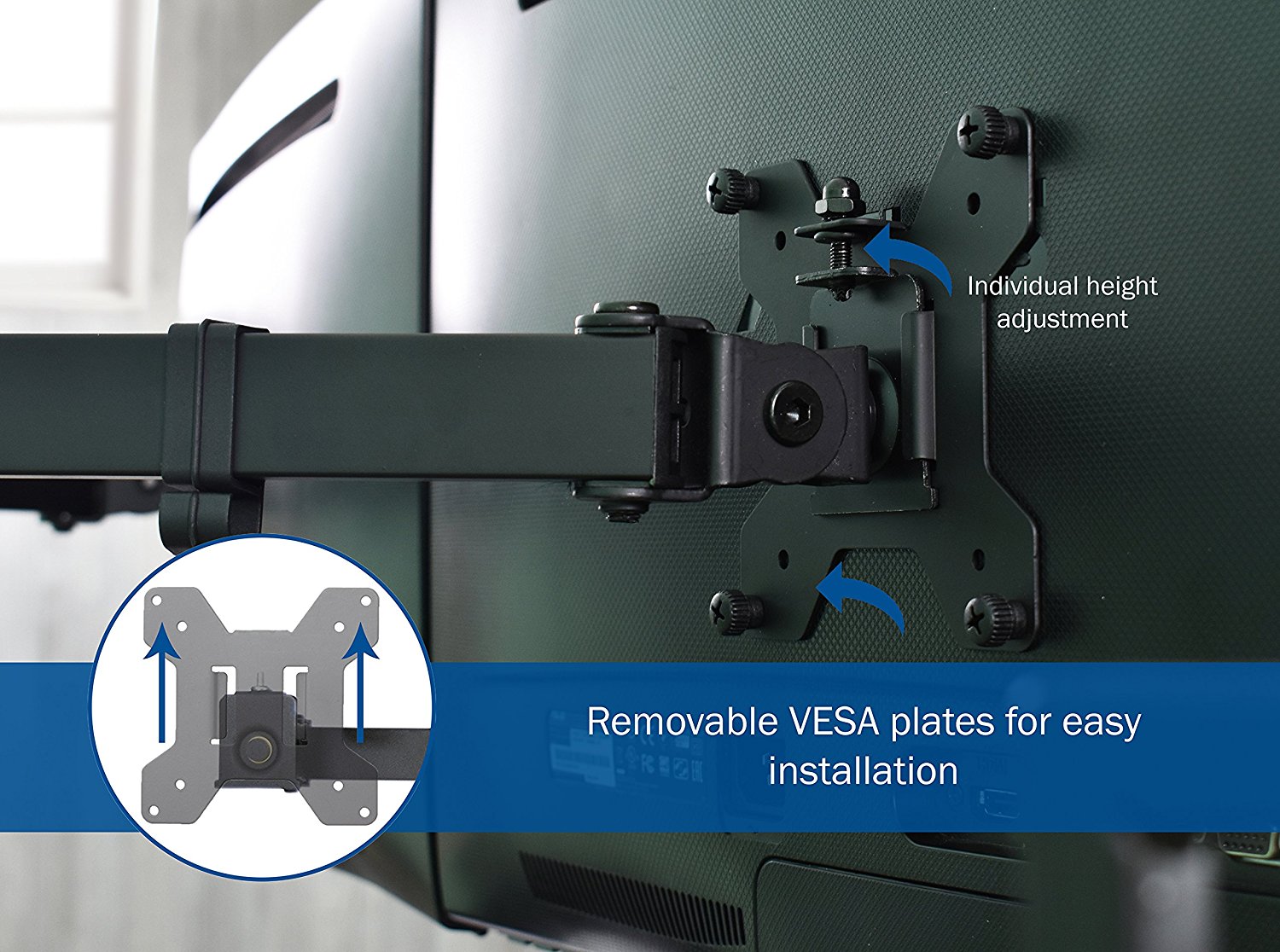 - EASY INSTALLATION – Mounting your monitors is a simple process with detachable VESA bracket plates. We provide a step-by-step manual and the necessary tools & hardware for assembly