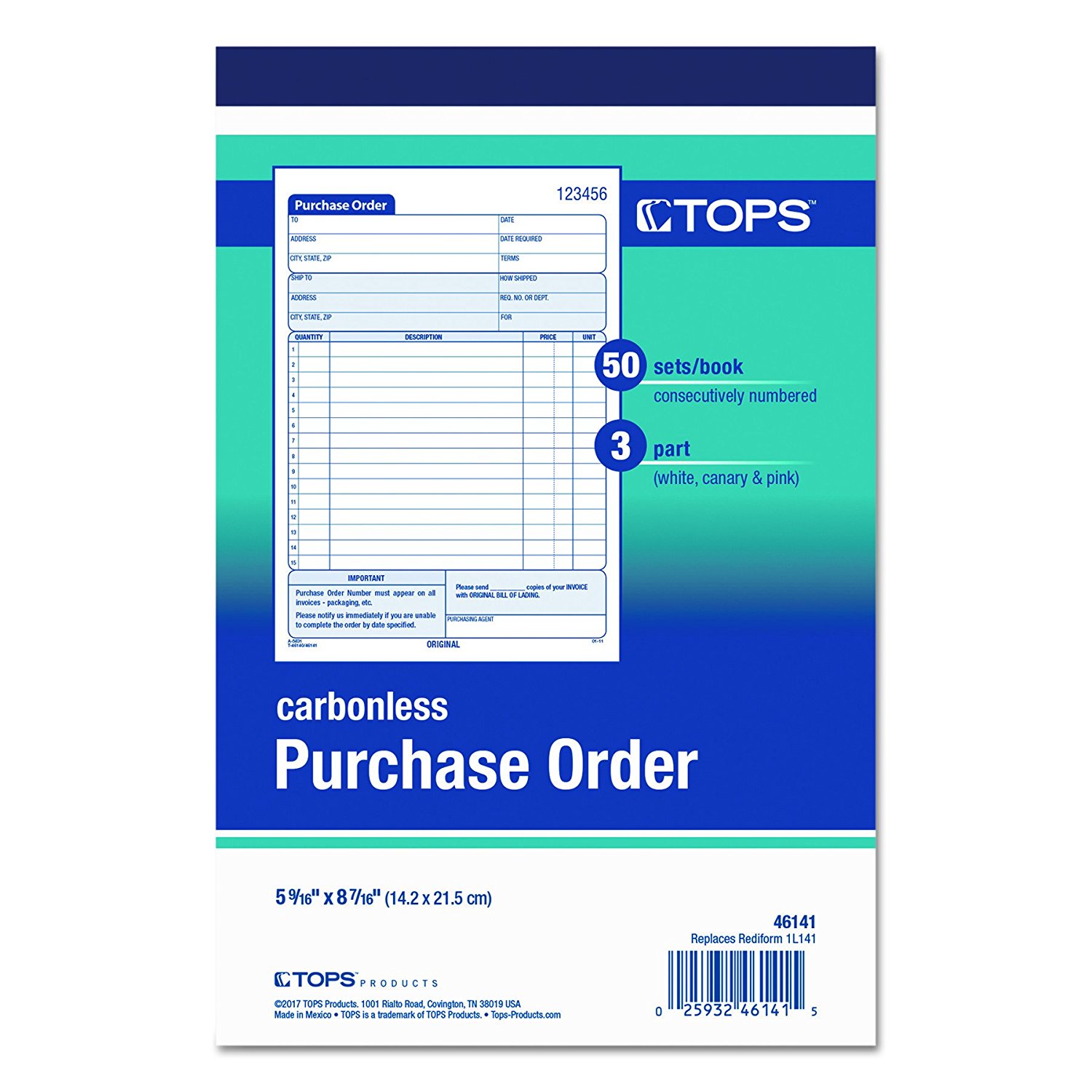 - Since 1952, TOPS has provided quality products and services to businesses throughout the world. TOPS continues that commitment providing innovative, high quality value-added paper products for the office, school and home. The TOPS Purchase Order Book contains consecutively numbered purchase orders and numbered lines help with record keeping. Remove original, keep follow-up copies in book as permanent record. The carbonless triplicates with a white, canary and pink paper sequence which provide a duplicate receipt copy without the hassle of messy carbons. A wraparound cover attached to back can be placed between sets to prevent write-through. Each set is consecutively numbered, and there are 50 sets per book. Whether it's a multi-part form, notebooks, writing pads, record books, or any of the hundreds of items we offer, you can count on TOPS products to help!