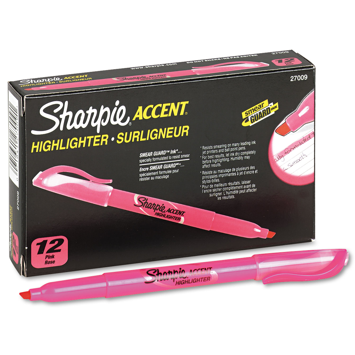 - Features SMEAR GUARD™ ink specially formulated to not smear when highlighting over many pen and marker inks including inkjet printouts, written notes, newspapers and more. Versatile chisel tip is great for highlighting or underlining. Quick drying, odorless ink won't fade type or bleed through most paper.