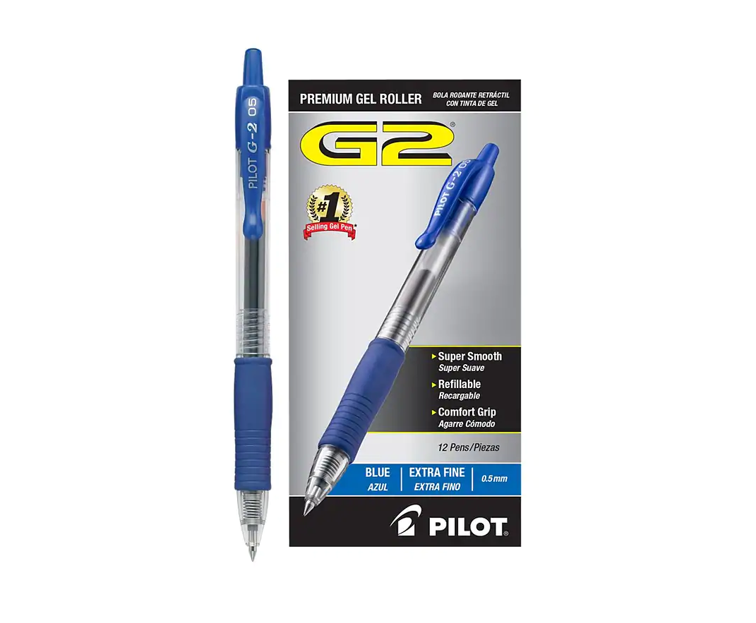 - G2® is the longest writing gel ink pen (Independent ISO testing. Data on file with Pilot Corporation of America). Provides smooth, skip-free writing. Contoured rubber grip offers writing comfort and control. Great for everyone, especially people who write for a living. Retractable and refillable.