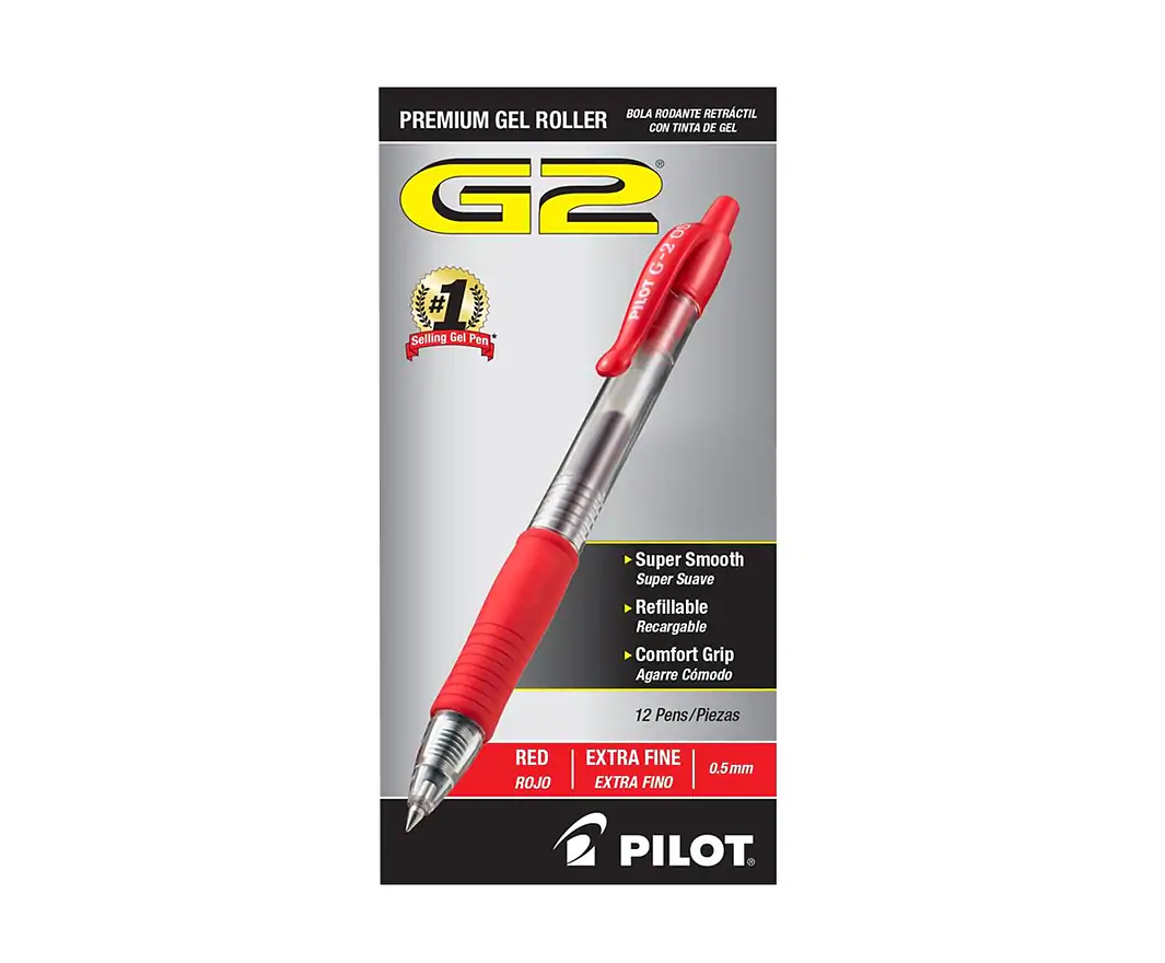 - G2® is the longest writing gel ink pen (Independent ISO testing. Data on file with Pilot Corporation of America). Provides smooth, skip-free writing. Contoured rubber grip offers writing comfort and control. Great for everyone, especially people who write for a living. Retractable and refillable.