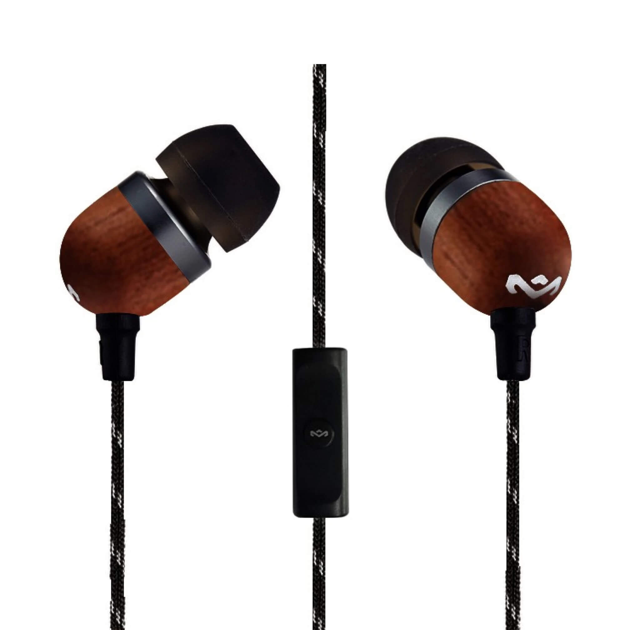 - Small and simple. With the Smile Jamaica noise-isolating earbuds, what you see is what you get. We’ve stripped the in-ear headphones down to their essence and built them back up using natural materials and recycled plastics. The music shines through crisply and even though they’re small, the bass vibrates. Features and materials include 9 mm neodymium driver, microphone with 1-button, two silicone ear gel sizes (small and medium), FSC™ wood rear housing, aluminum front housing, durable braided cable,