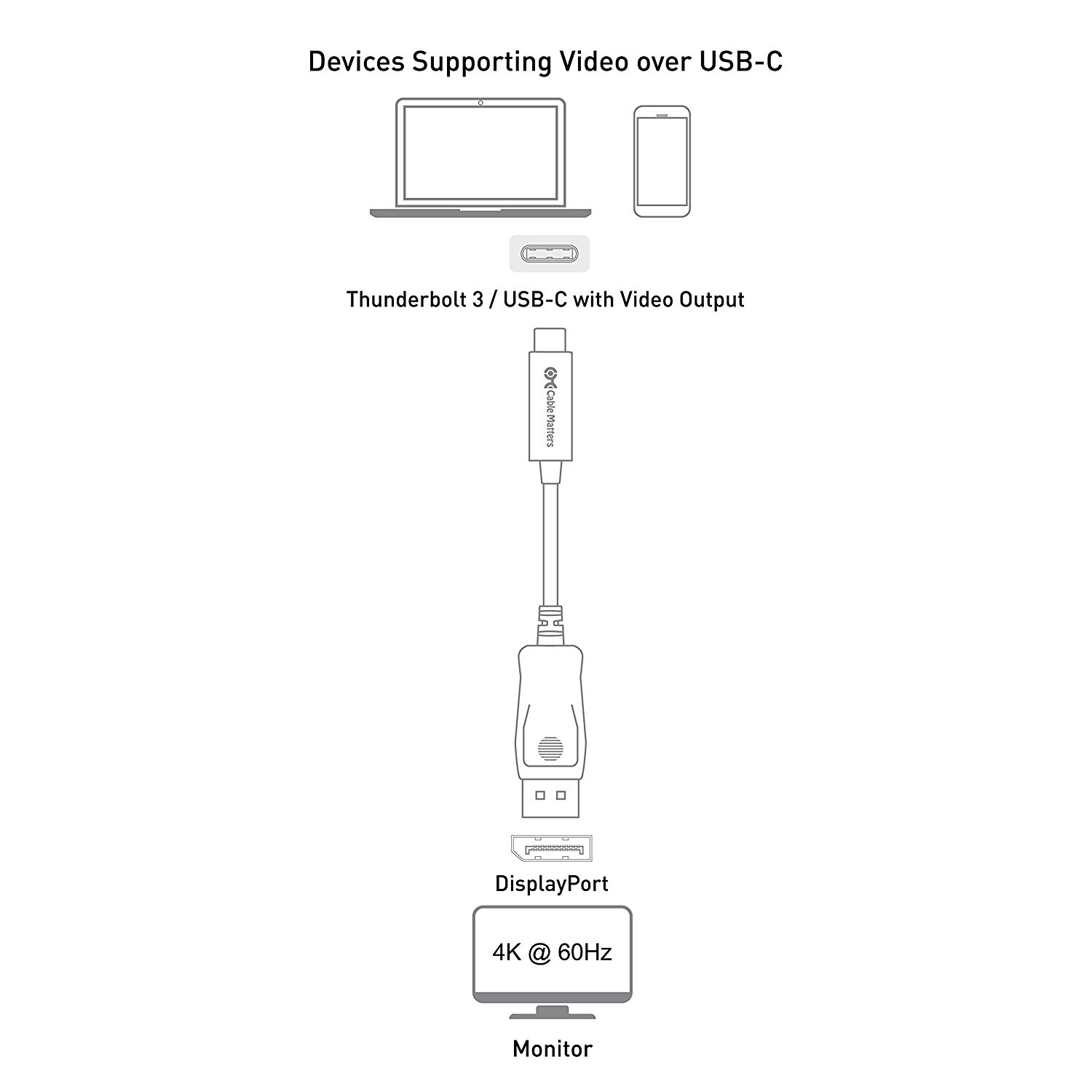 - USB-C to DisplayPort cable directly connects a computer with a USB C port to a monitor or projector with DP input; Low-profile and reversible USB Type-C connector clicks into place on your device and latches on the DP connector provide a snug and secure connection to the display monitor.