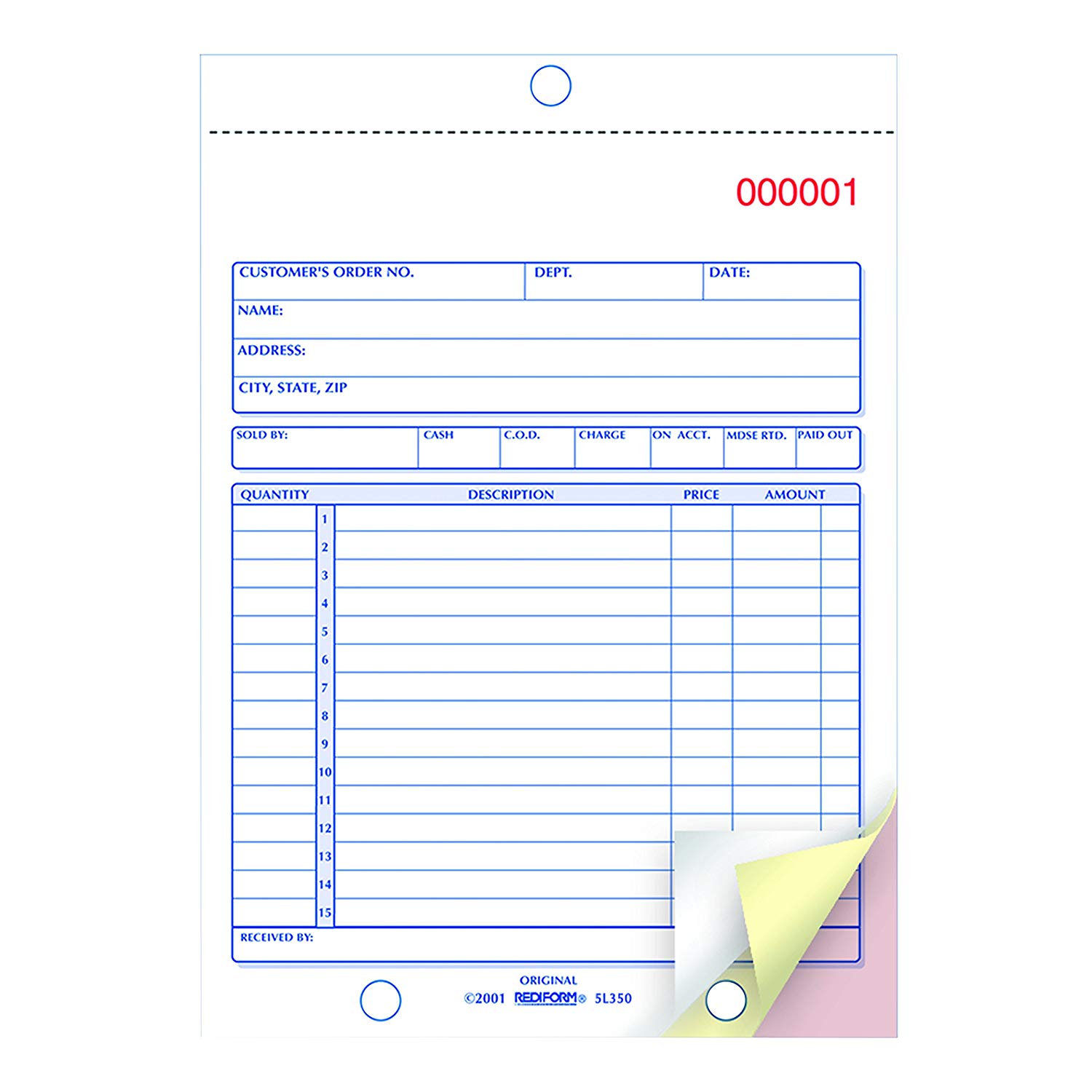 Rediform® Sales Book, 5 1/2 x 7 7/8, Three-Part Carbonless