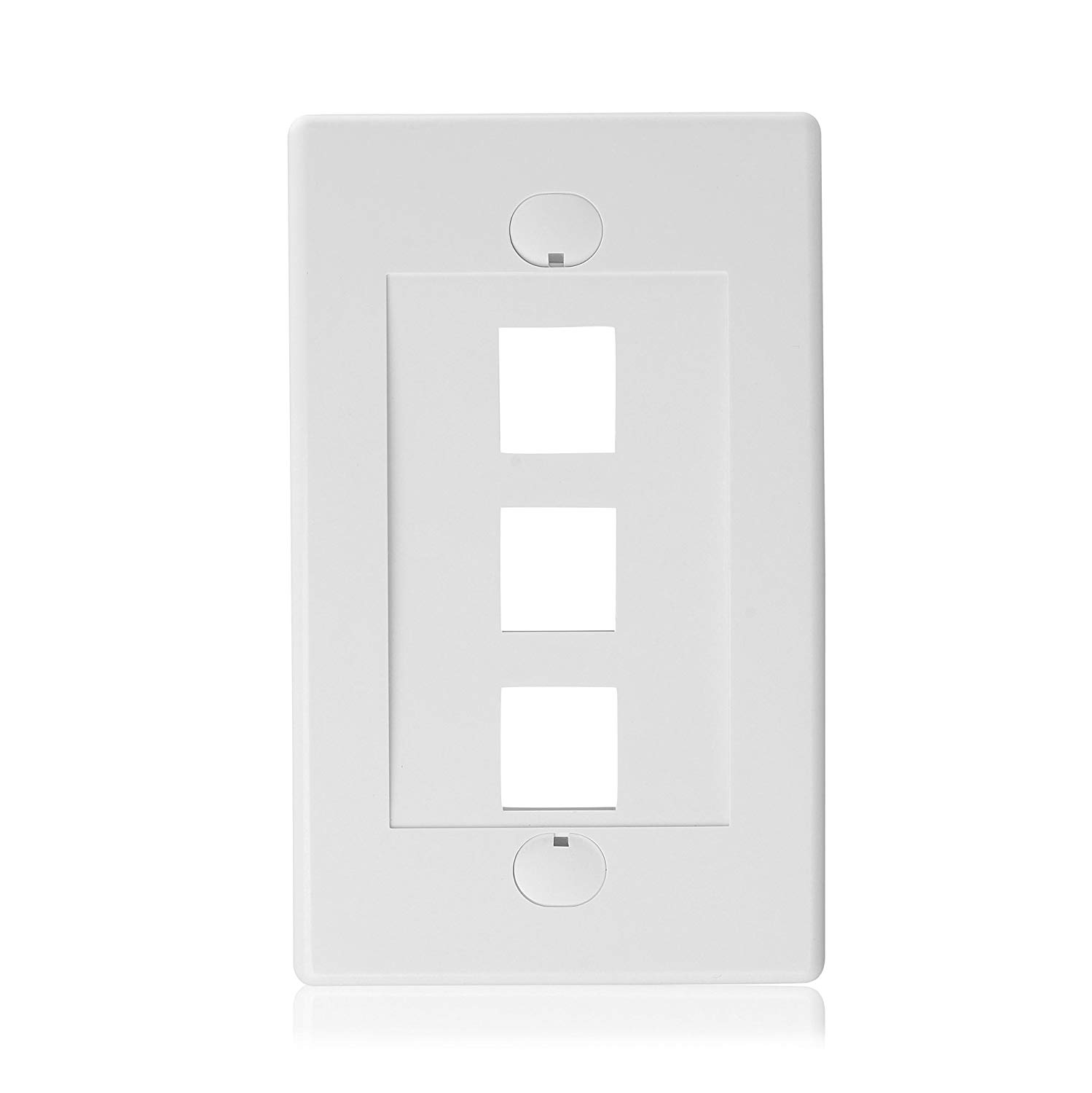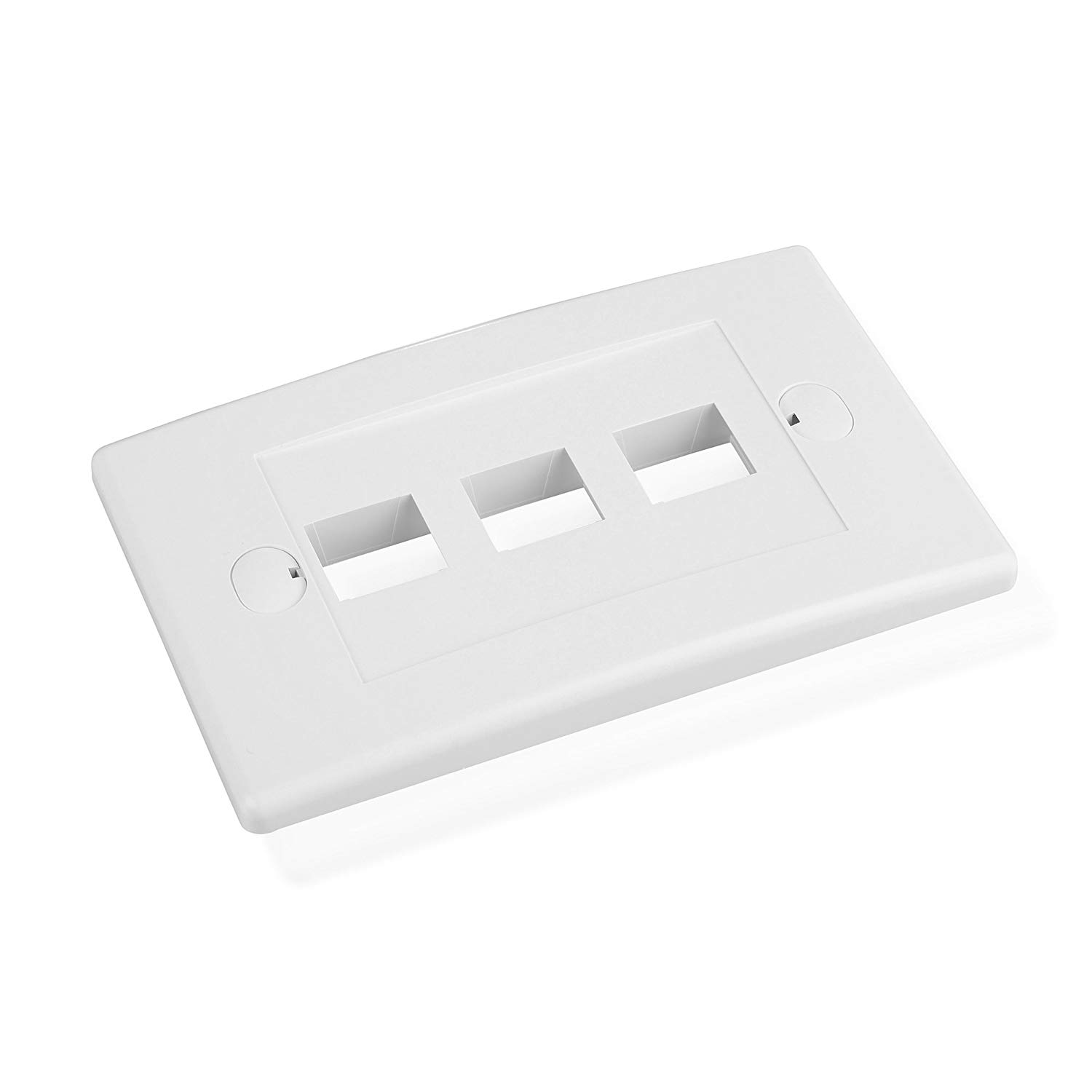 - Single-gang wall plate with a standard size 3-port keystone jack insert