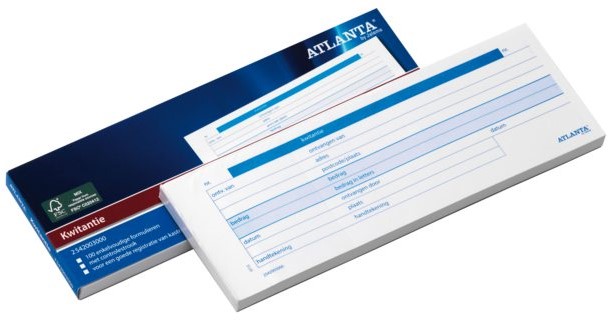 - Receipts with perforation for easy tearing off and an edge strip that remains in the block.