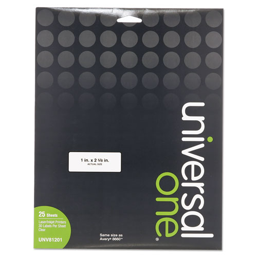 DELUXE CLEAR LABELS INKJET/LASER PRINTERS, 1 X 2.63, CLEAR, 30/SHEET, 25 SHEETS/PACK
