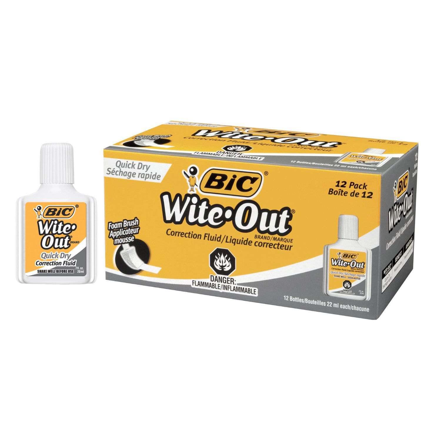 - BIC Wite Out Quick Dry Correction Fluid White Foam Brush 7 Oz (20ml) Each. Wite Out, Quick Dry, Correction Fluid, Stroke Across Paper, Do Not Dab, Allow To Dry Before Writing. Foam Brush Provides Neat, Precise Corrections. Covers Photocopies, Faxes, Ink & Most Markers, Shake Well Before Use