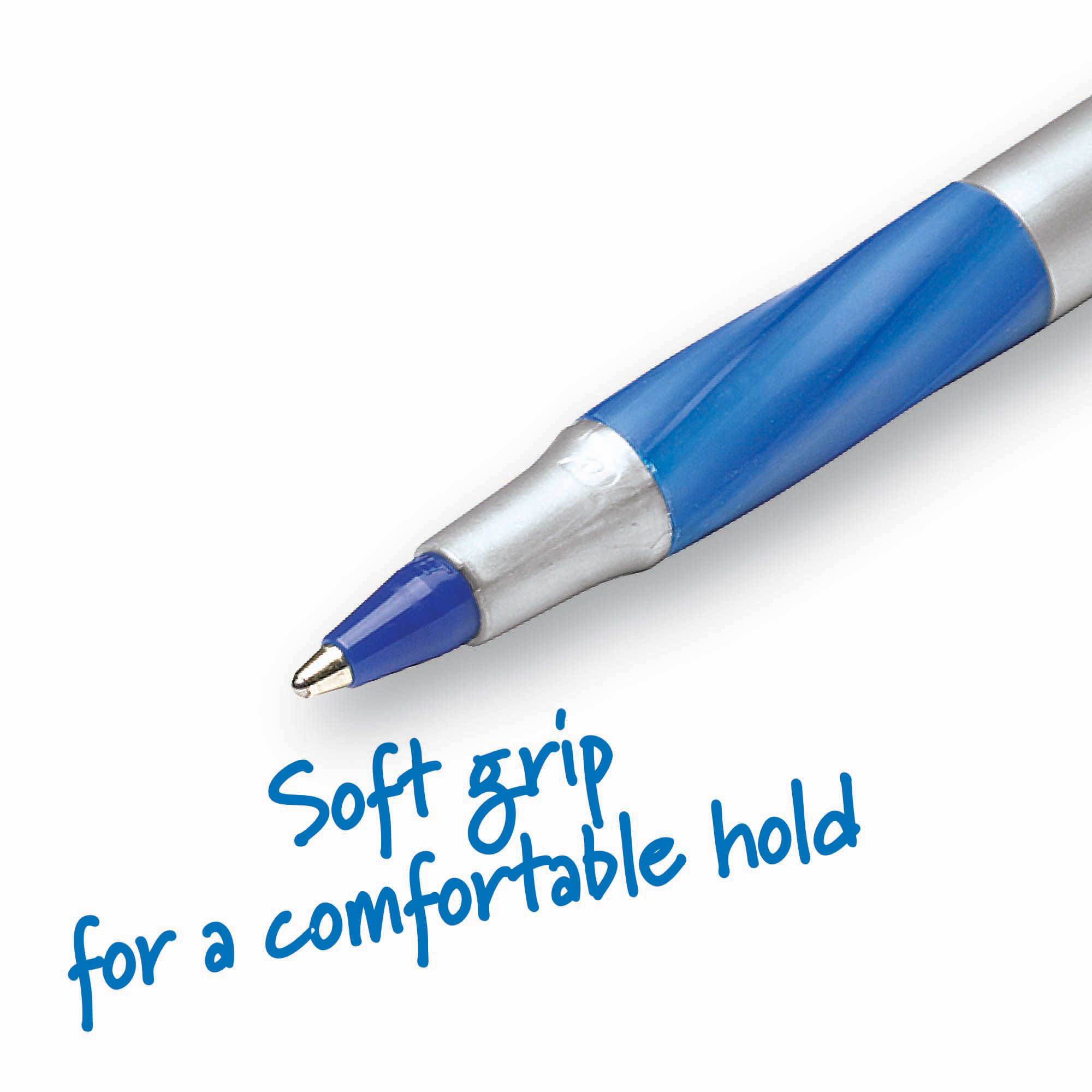 - The Round Stic Grip Xtra Comfort Ball Pen is equipped with a soft grip that provides added control and comfort. The classic round barrel fits comfortably in the hand