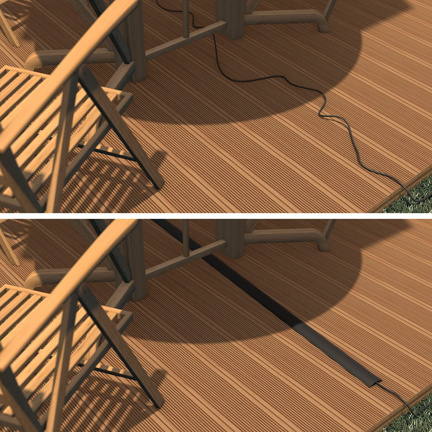 - High-Quality Floor Cable Protectors, Made in USA from flexible pvc, supplied coiled - uncoils to lay flat (no need to add to boiling water to uncoil). Can be easily cut to size if shorter wire cover lengths are required, cut using sharp utility knife or heavy duty scissors.