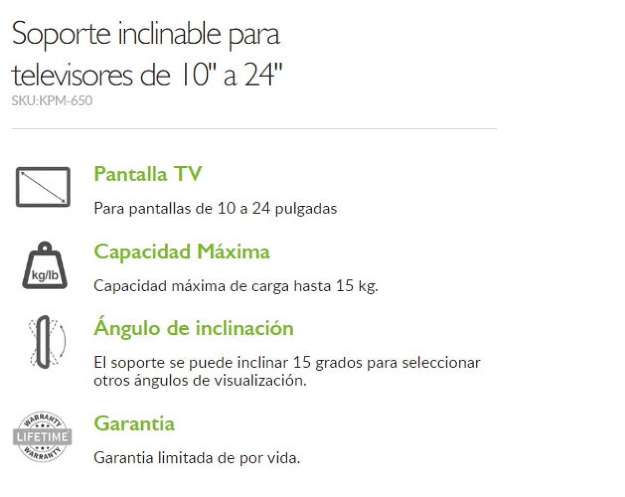 The Klip Xtreme KPM-650 is a robust yet lightweight and space-saving TV bracket that fits flat against the wall while leaving enough space for air to flow. It is suitable for TV/LCD’s between 10” and 24”, and up to 33 lb in weight.