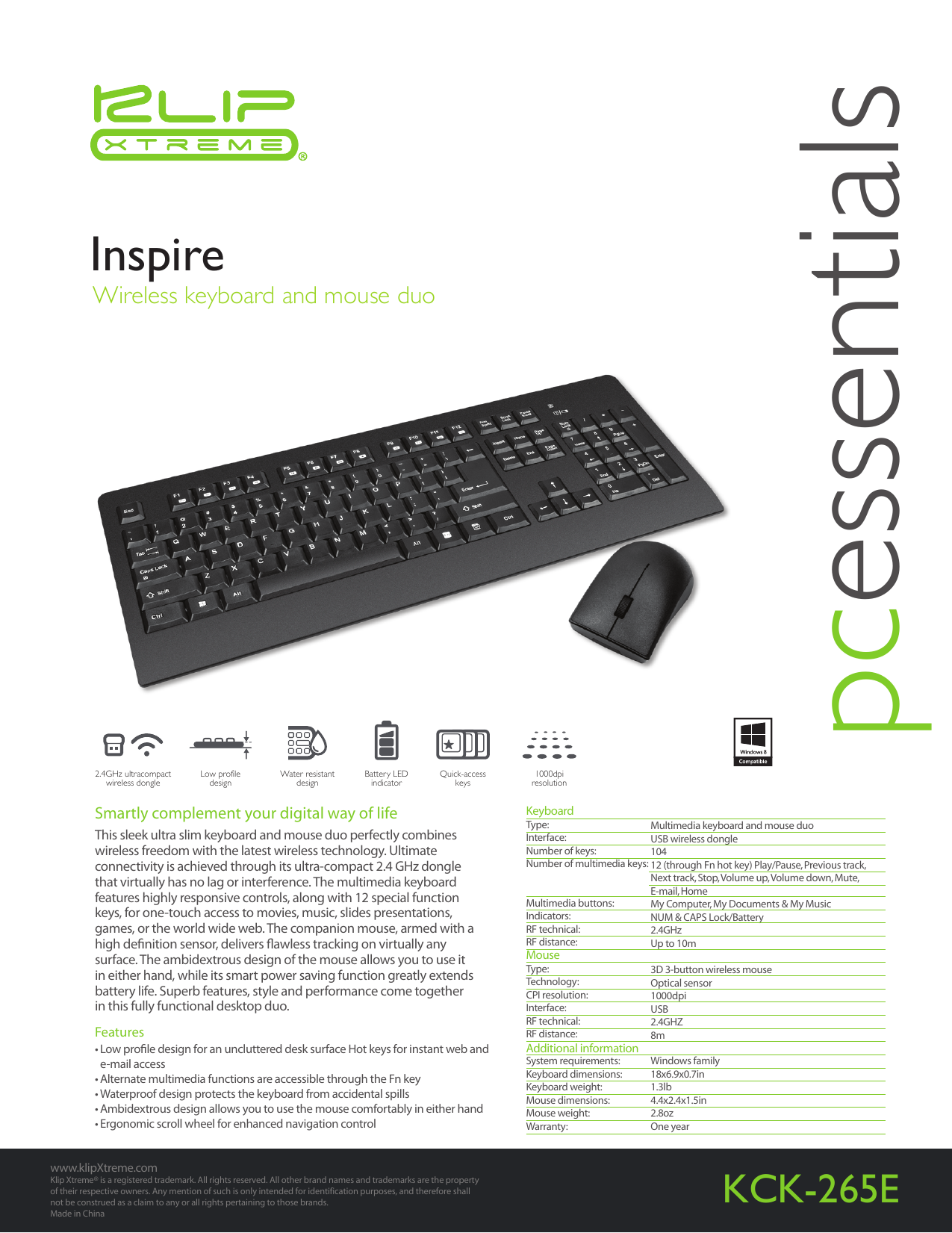 KlipX Inspire Wireless Keyboard & Mouse Combo