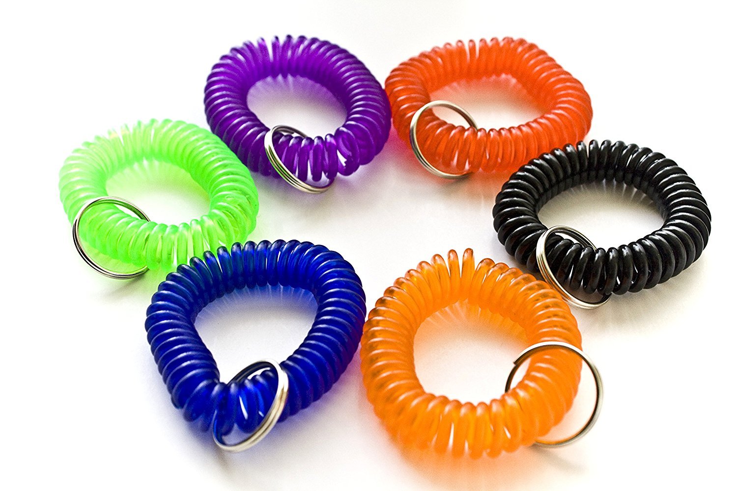Universal Wrist Coil Plus Key Ring, Plastic, Assorted Colors, 6/Pack