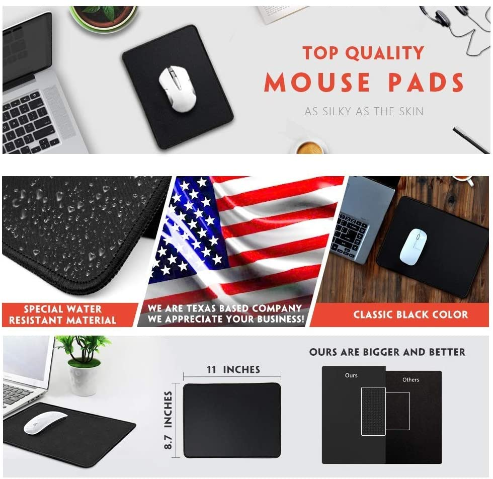 Mouse Pads Stitched Edges Premium Waterproof Gaming Mouse Mat Pad, Extends Battery Life Non-Slip Rubber Base Thick Black Mousepad for Laptop Computer & PC, 11 x 8.7 inch