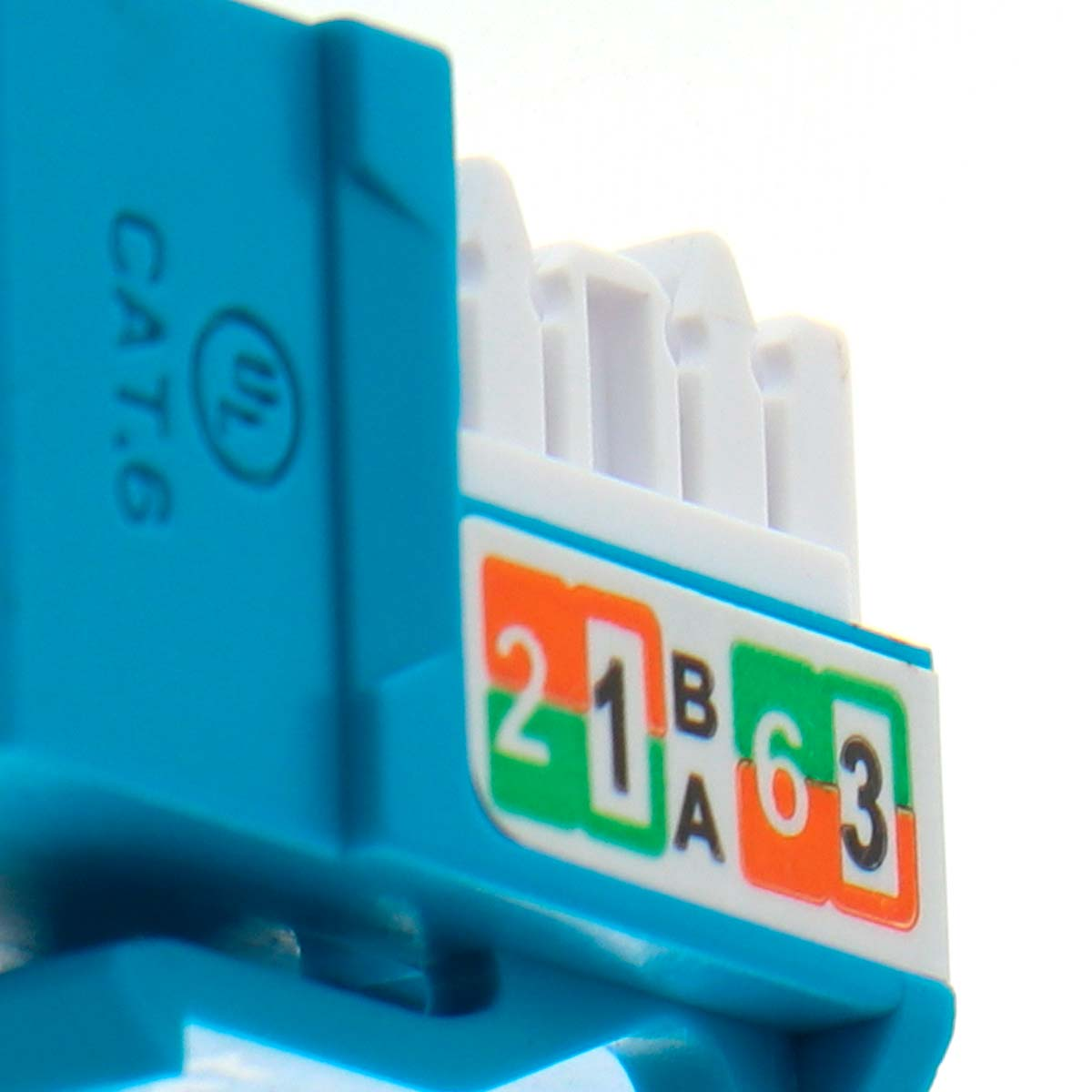 - IDC RJ45 CAT6/CAT5e Tool-less No Punch Down Tool Required Gold Plated Keystone Jack, 10 GB Ethernet Cable Patch Panel Wall Plate w Standard Keystone Port, with Color Coded Wiring Schema Snap In Stand