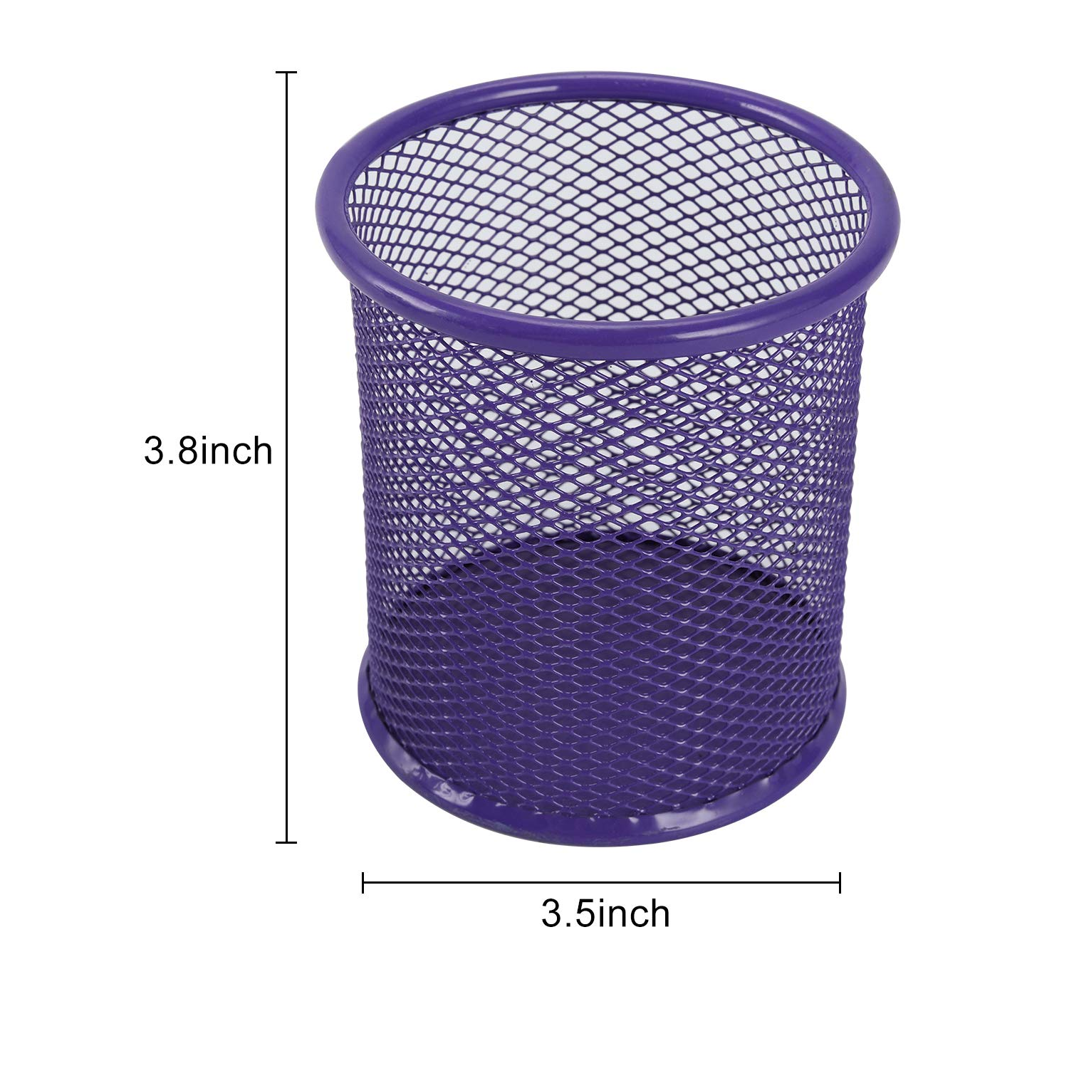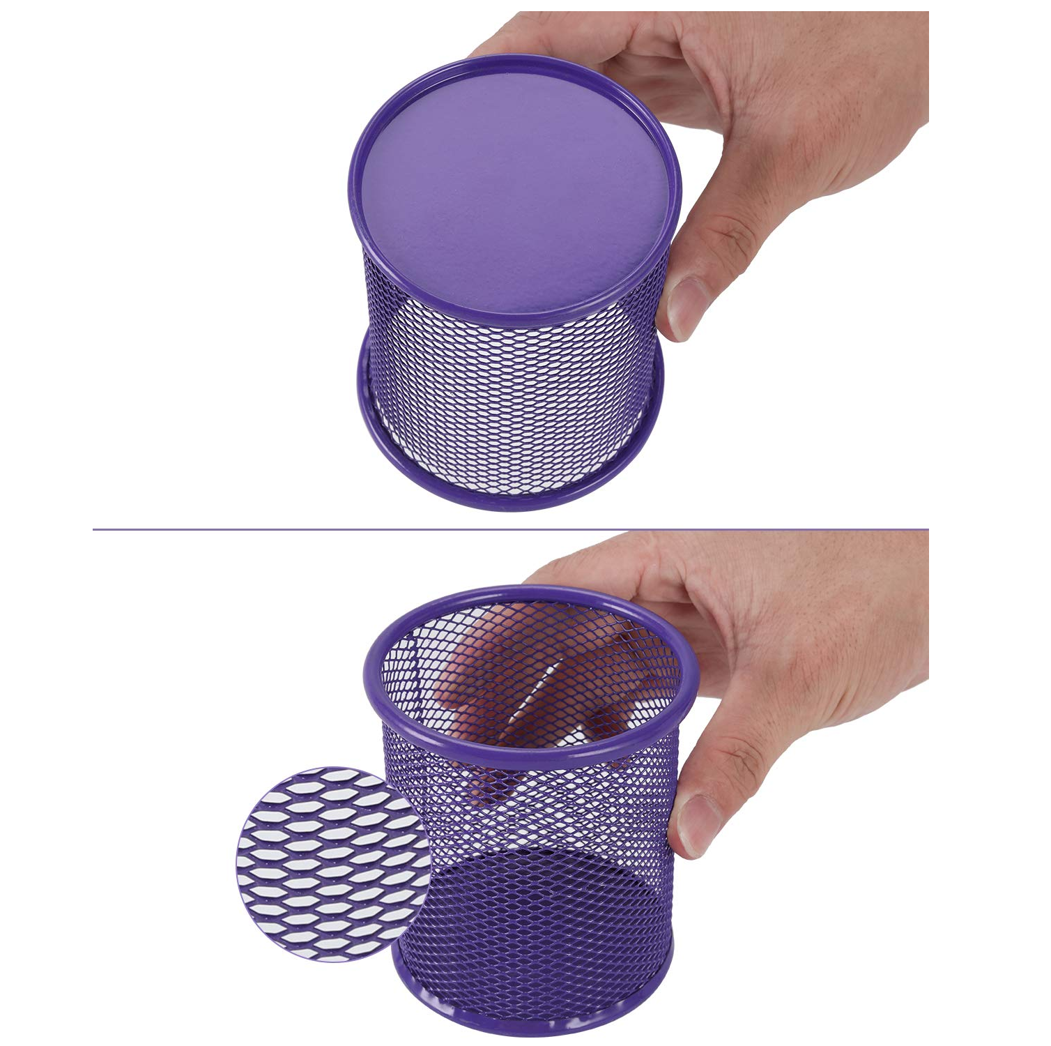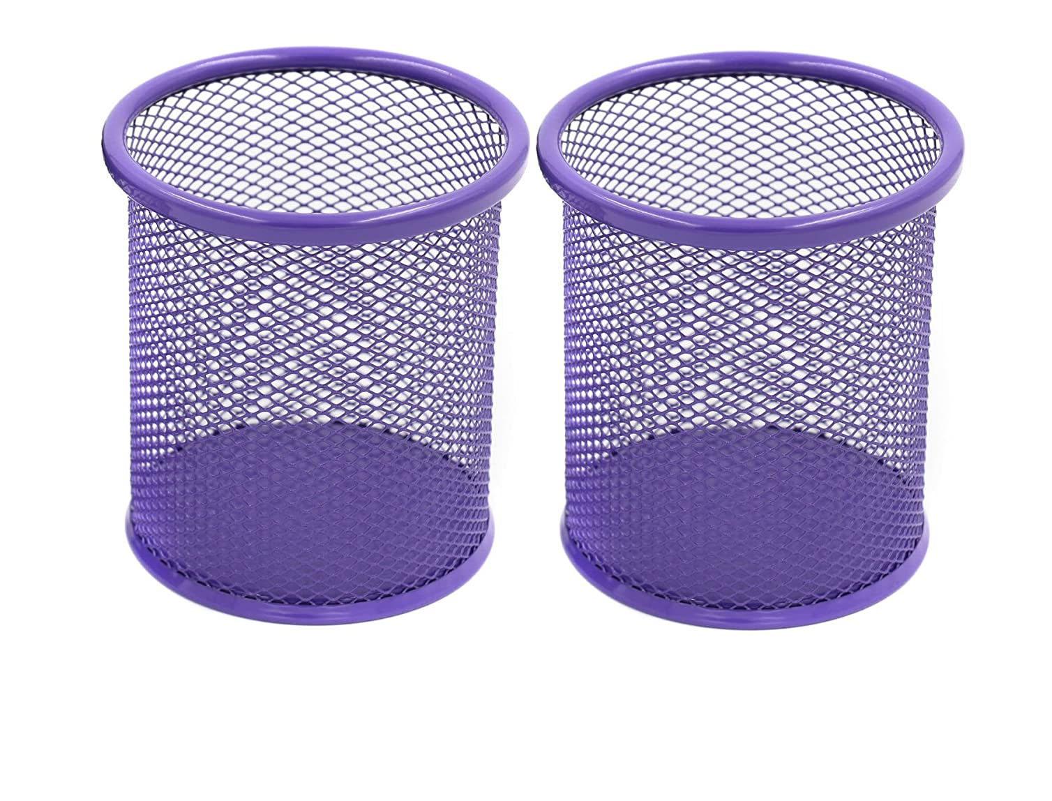 EasyPAG 2 Pcs 3.5 inch Round Mesh Steel Pen Holder , Purple