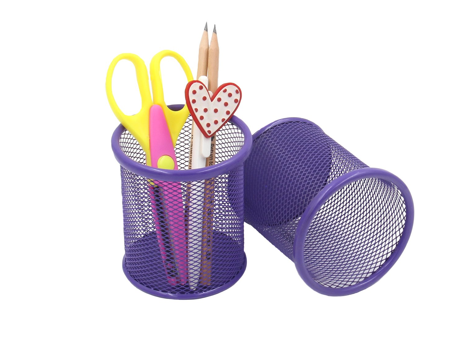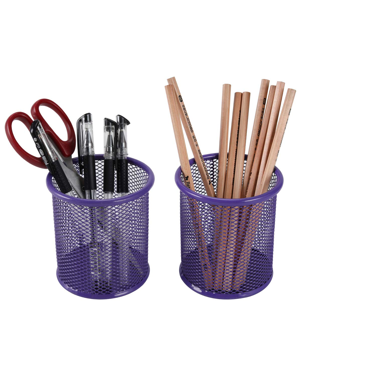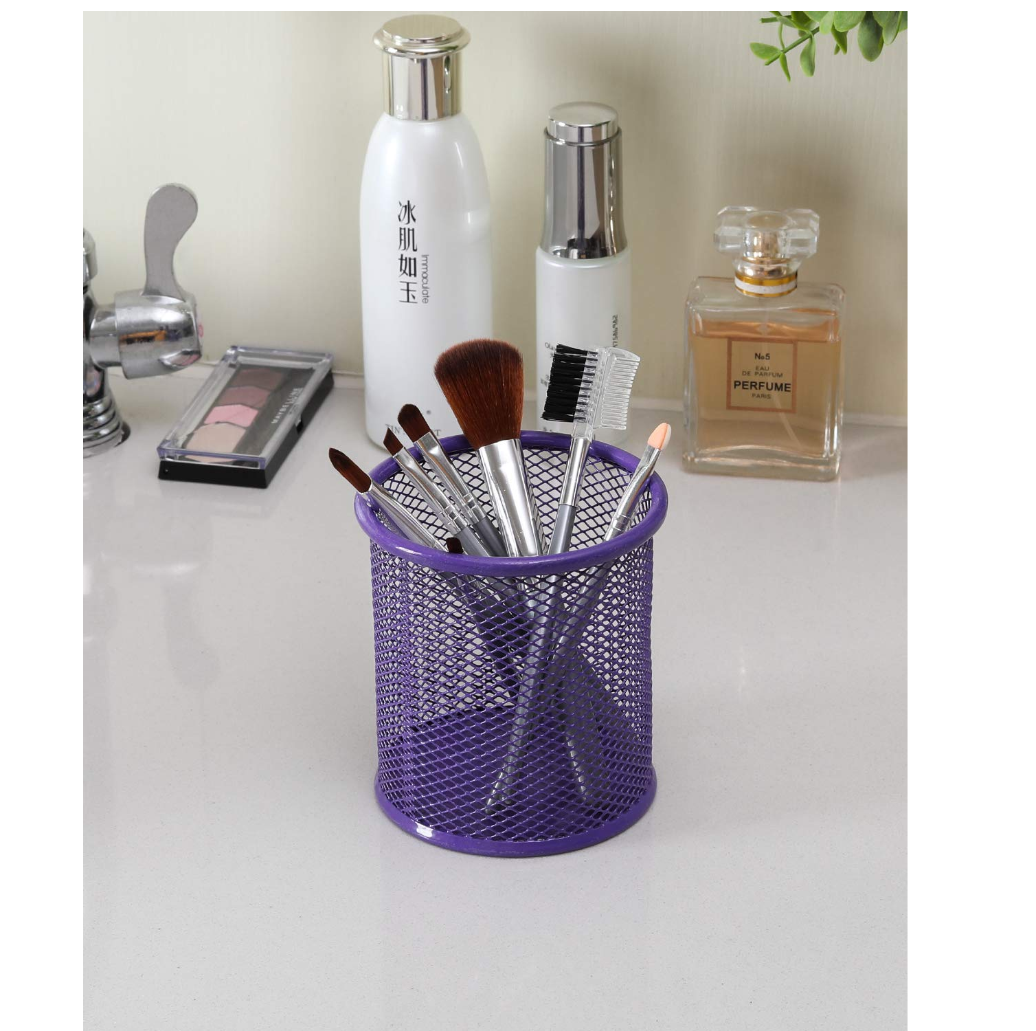EasyPAG 2 Pcs 3.5 inch Round Mesh Steel Pen Holder , Purple