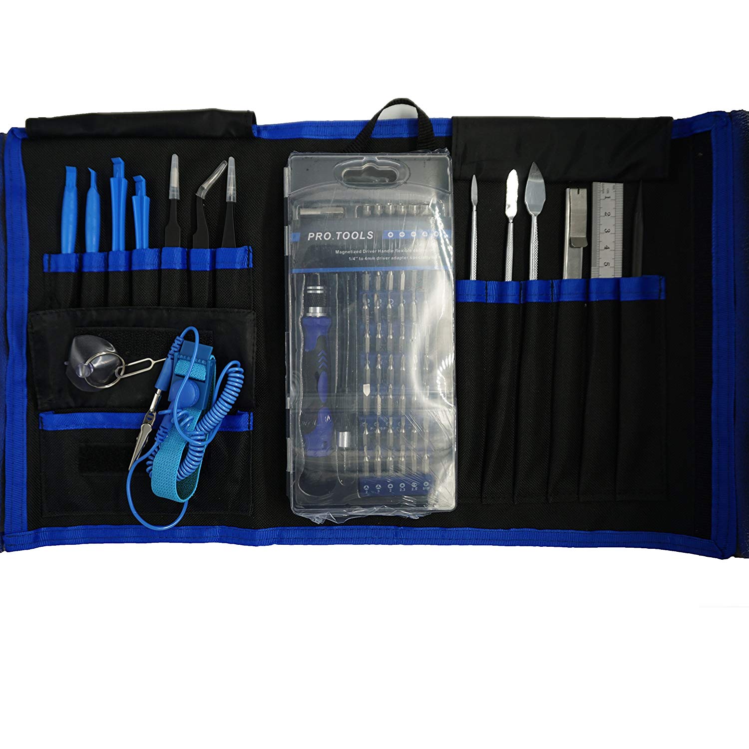 - Multi-Magnetic Screwdriver Set : 80 in 1 Precision Screwdriver Set have more tools, which includes utility knife, Anti-Static tweezers, Anti-Static Wrist Strap, SIM card ejector pin and LCD Suction Cup, Triangle plectrum, plastic spudgers, metal spudgers, SIM card shells, Magnetizing and demagnetizing tool, etc.